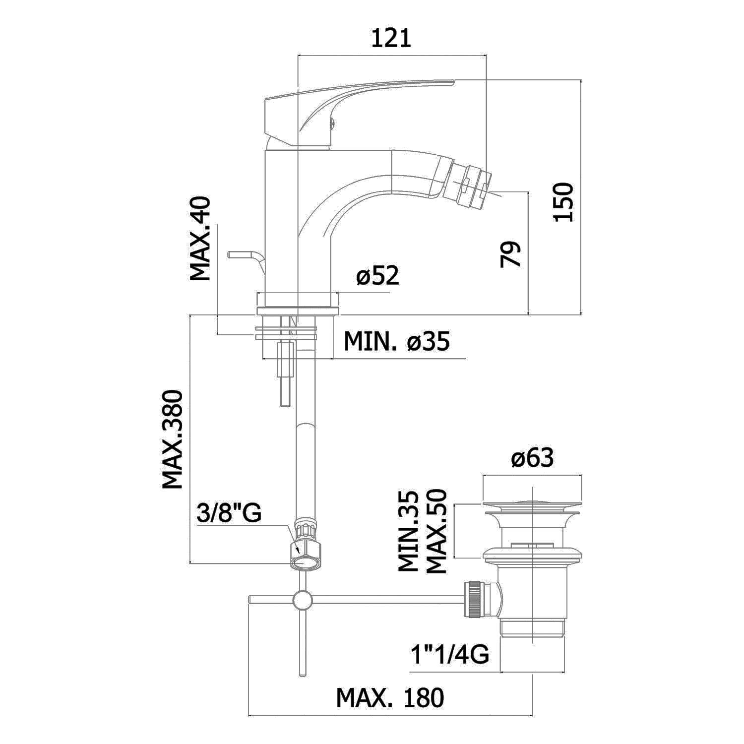 Kronenbach Rivara Bidet-Einhebelmischer mit Ablaufgarnitur 1 1/4