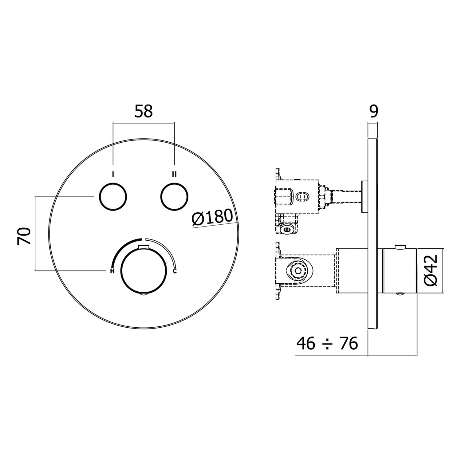 Kronenbach Smart Push Unterputz-Mischer für 2 Verbraucher, runde Ausführung