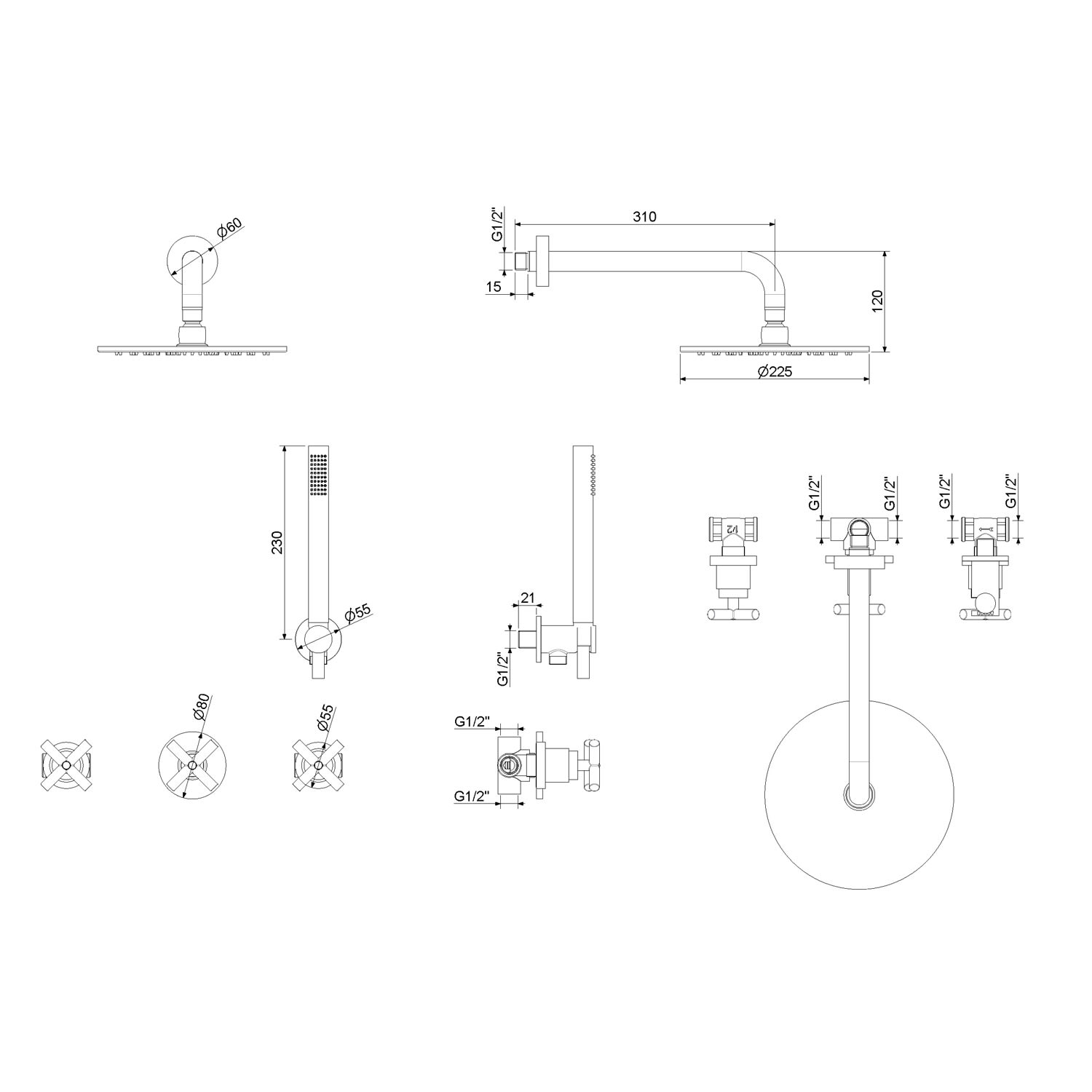 - 1 x Kopfbrause Ø 22,5 cm, Anschluss 1/2"
