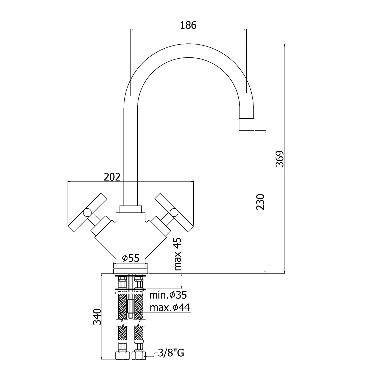 - 2 Edelstahl-Anschlussschläuche 3/8" G