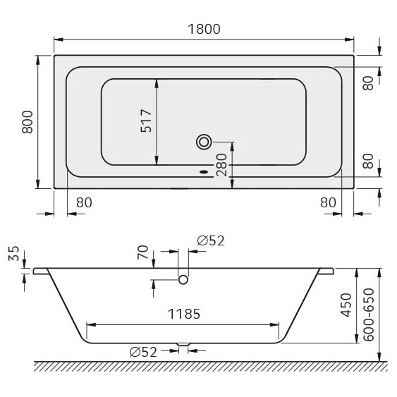 Kronenbach Cube Duo-Badewanne 180 x 80 cm