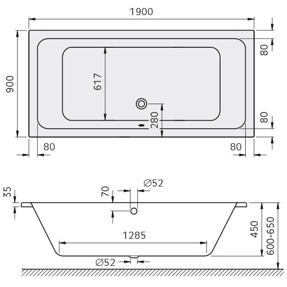 Kronenbach Cube Duo-Badewanne 190 x 90 cm