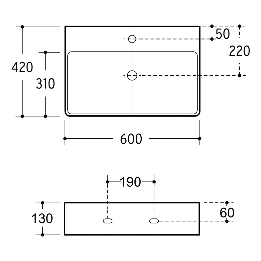 eckig, mit 1 Hahnloch und Überlauf
