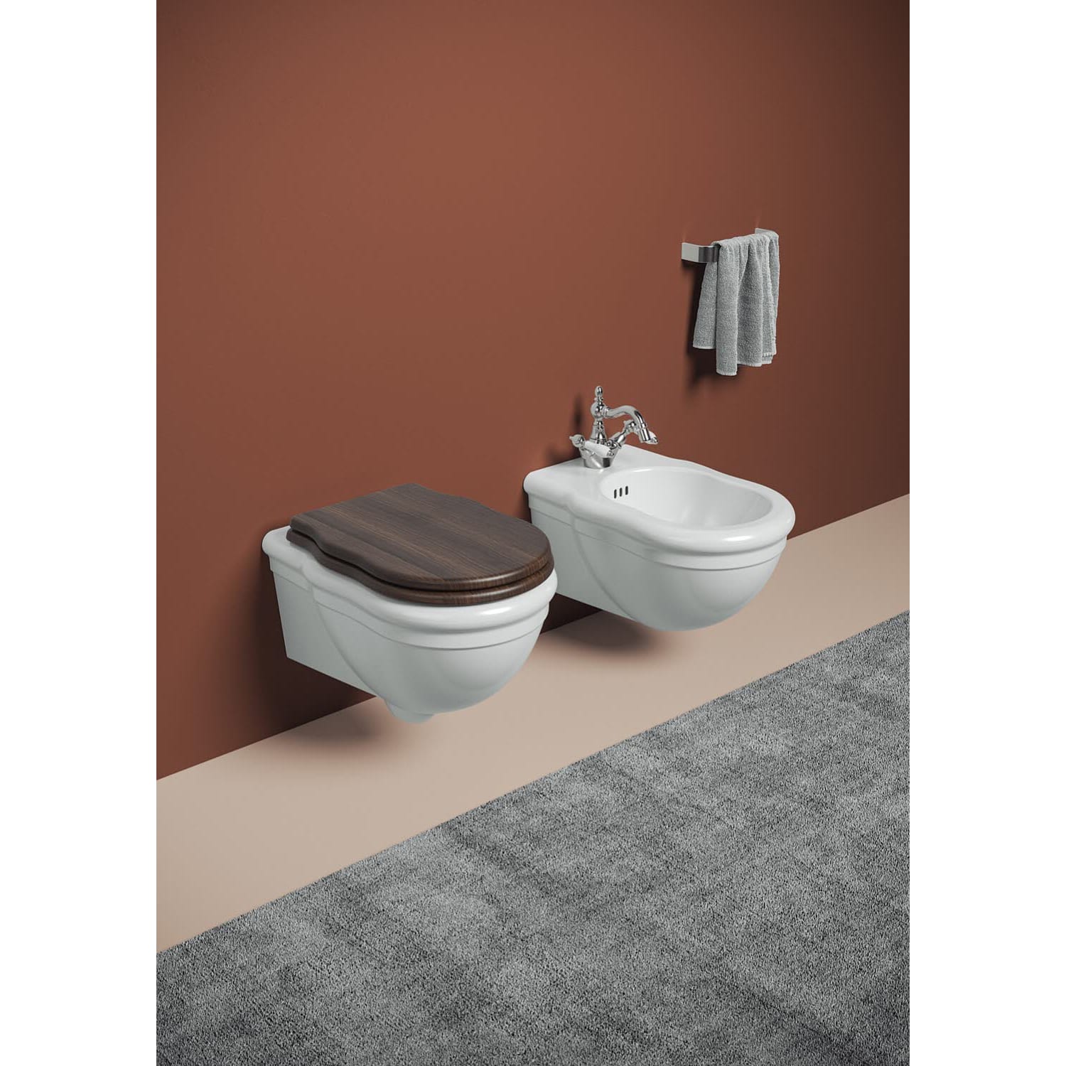 Die Serie zeichnet sich durch weiche Linien und traditionelle Formen aus. Sie bildet eine Atmosphäre im alten Stil nach und ist ideal für klassische und moderne Umgebungen.