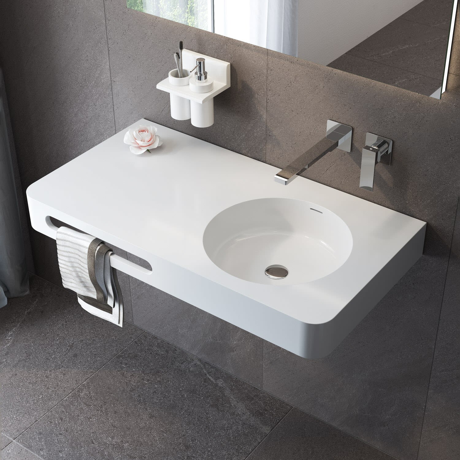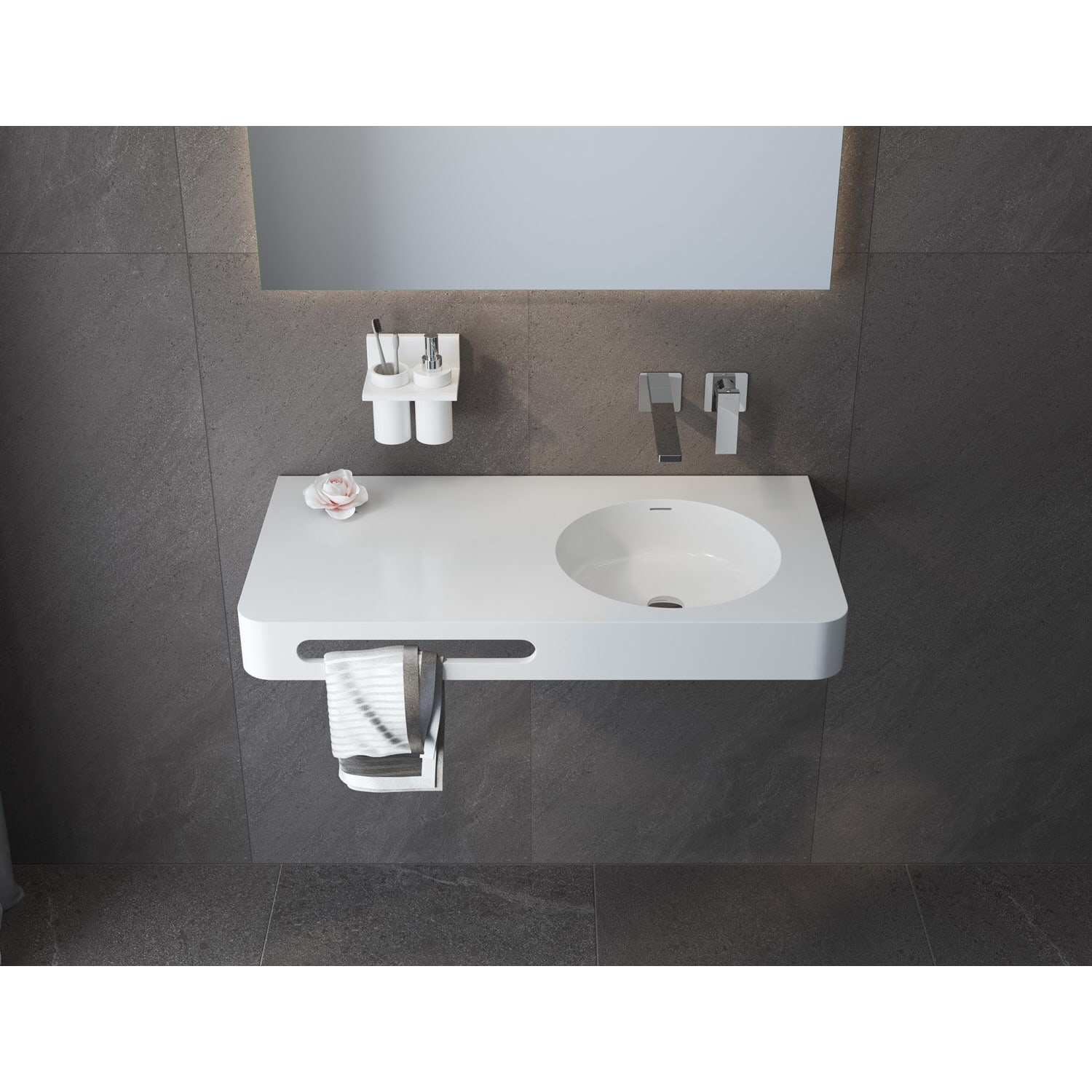 Kronenbach Stone Handwaschbecken 90 x 48 cm Becken rechts ohne Hahnlochbohrung, mit Handtuchhalterung