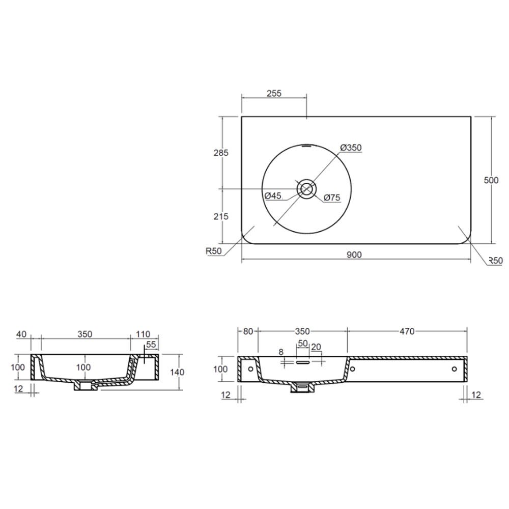 - Material: Mineralwerkstoff