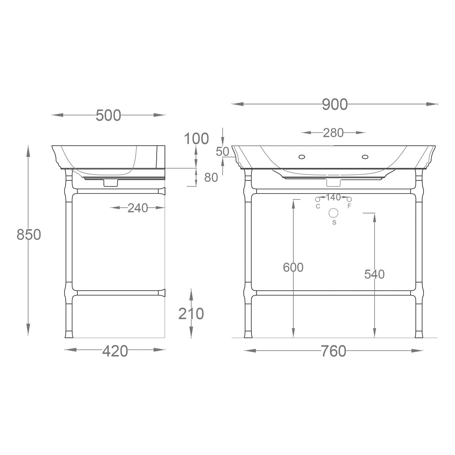 Kronenbach Zeta 2.0 Unterbaugestell eckig mit Glasablage für Waschtisch 90 cm