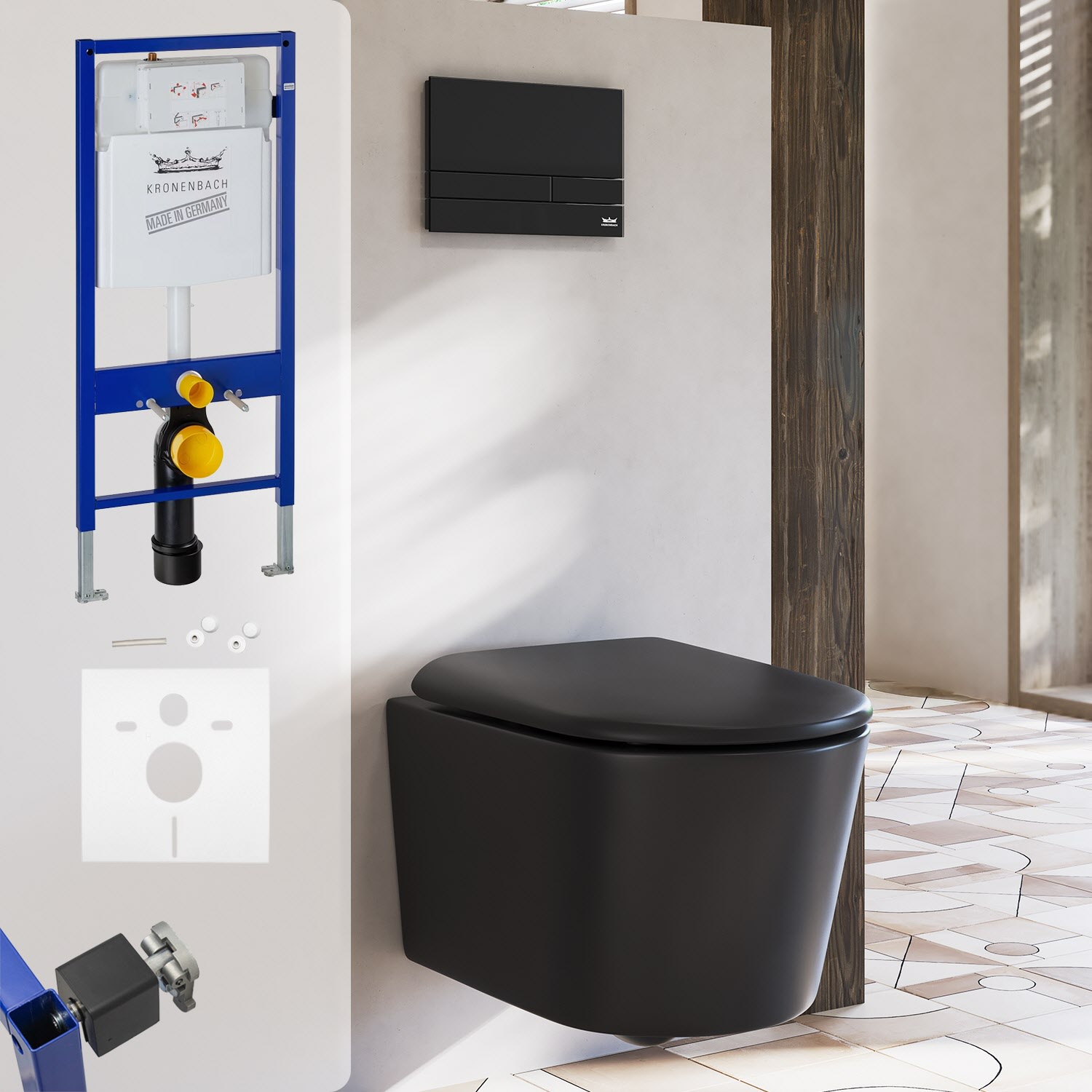 Kronenbach Tube Wand-WC spülrandlos Komplettset wrapover