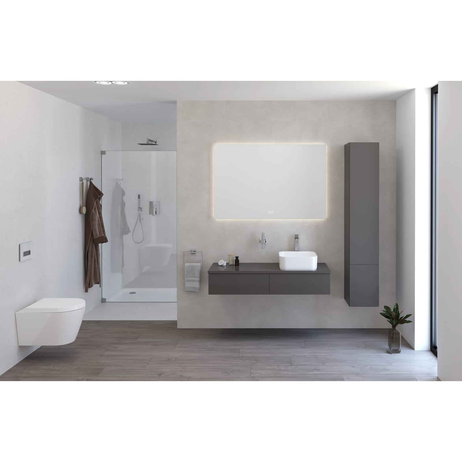 - Front: MDF-Kern mit Melaminharzdirektbeschichtung, Vorderseite zusätzlich mit einem einschichtigen Hochglanz UV-Acryllack beschichtet, Kanten umlaufend mit einer glänzenden Kunststoffdickkante belegt