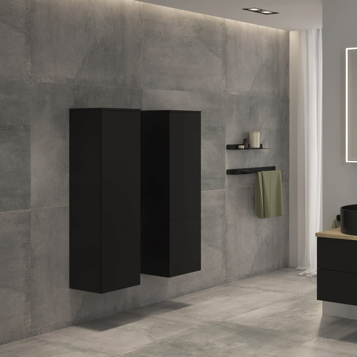 Die Innenausstattung ist grundsätzlich gedämpft und beinhaltet, je nach Modell, Blum ANTARO-Schubkästen sowie Auszüge in oriongrau als Vollauszüge.