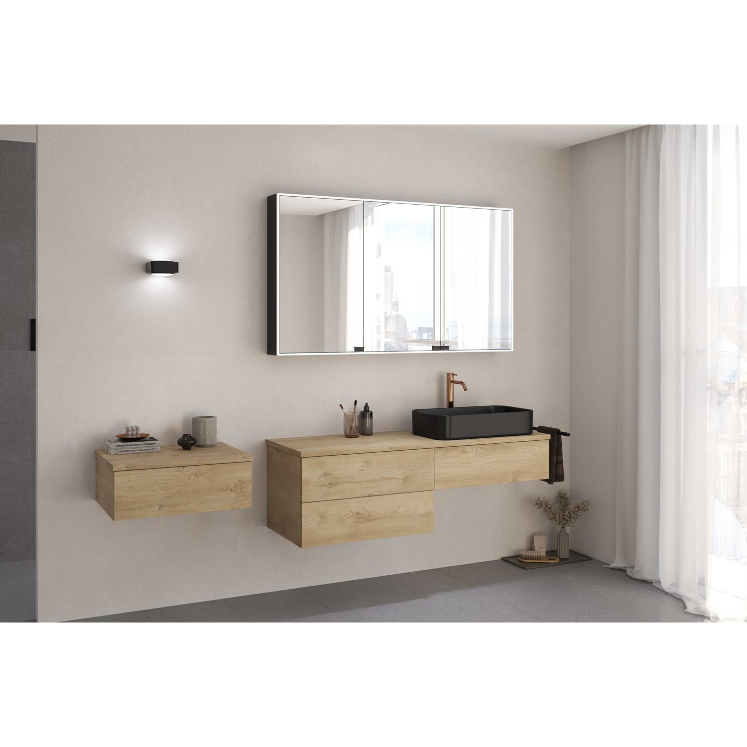Der Korpuskern besteht aus einer Holzwerkstoffplatte. Die spezielle Melaminharzbeschichtung auf der Oberfläche bietet Schutz gegen Feuchtigkeit, Hitze und haushaltsübliche Beanspruchungen. Für eine dauerhafte Stabilität ist der Korpus mehrfach gedübelt. Die Waschtischplatte hat einen mehrschichtigen Aufbau. Dieser Schichtstoff ist härter, extrem widerstandsfähig, hygienisch, pflegeleicht, feuchtigkeitsunempfindlich und hält über Jahre selbst großen Alltagsbelastungen stand.