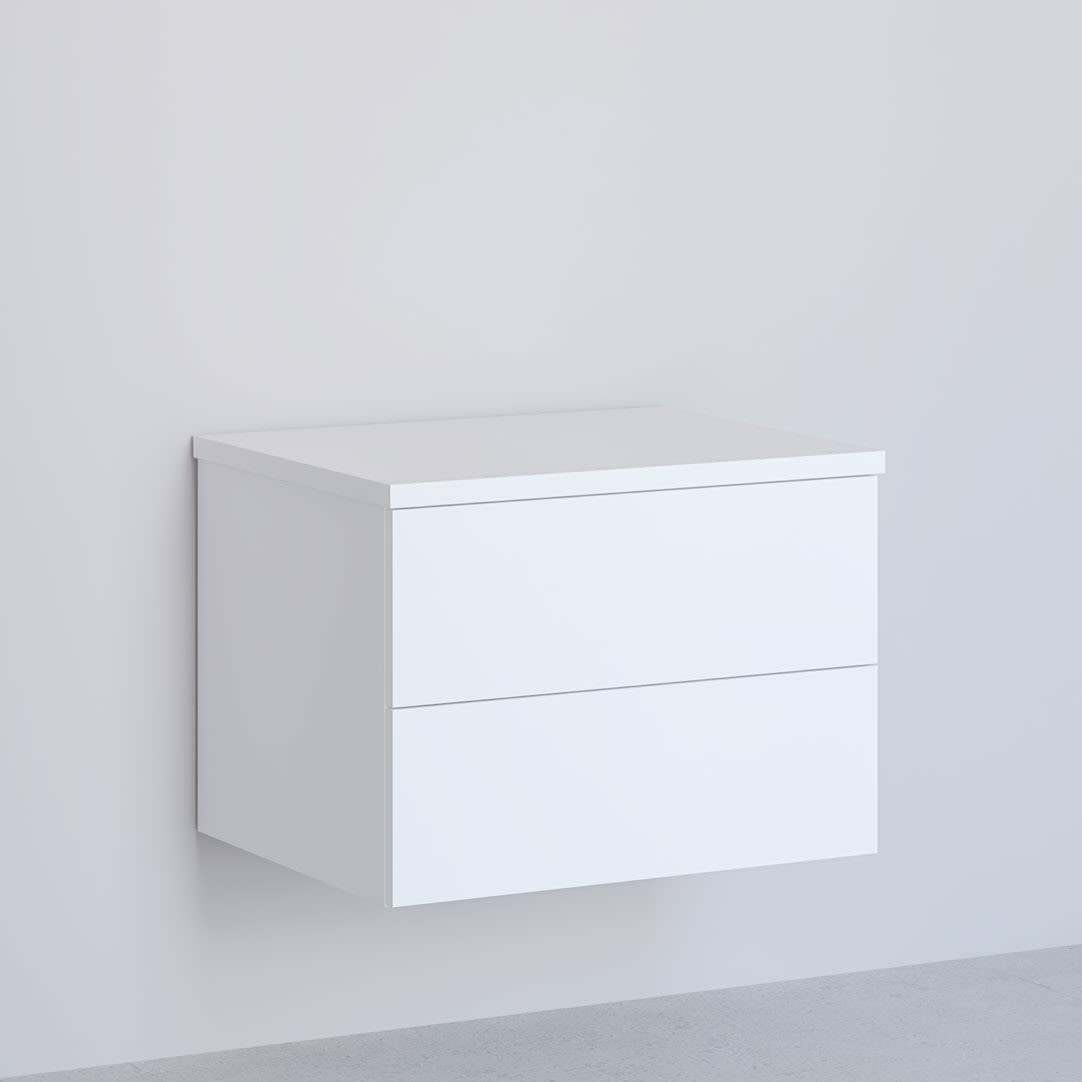 Der Korpuskern besteht aus einer Holzwerkstoffplatte. Die spezielle Melaminharzbeschichtung auf der Oberfläche bietet Schutz gegen Feuchtigkeit, Hitze und haushaltsübliche Beanspruchungen. Für eine dauerhafte Stabilität ist der Korpus mehrfach gedübelt. Die Waschtischplatte hat einen mehrschichtigen Aufbau. Dieser Schichtstoff ist härter, extrem widerstandsfähig, hygienisch, pflegeleicht, feuchtigkeitsunempfindlich und hält über Jahre selbst großen Alltagsbelastungen stand.