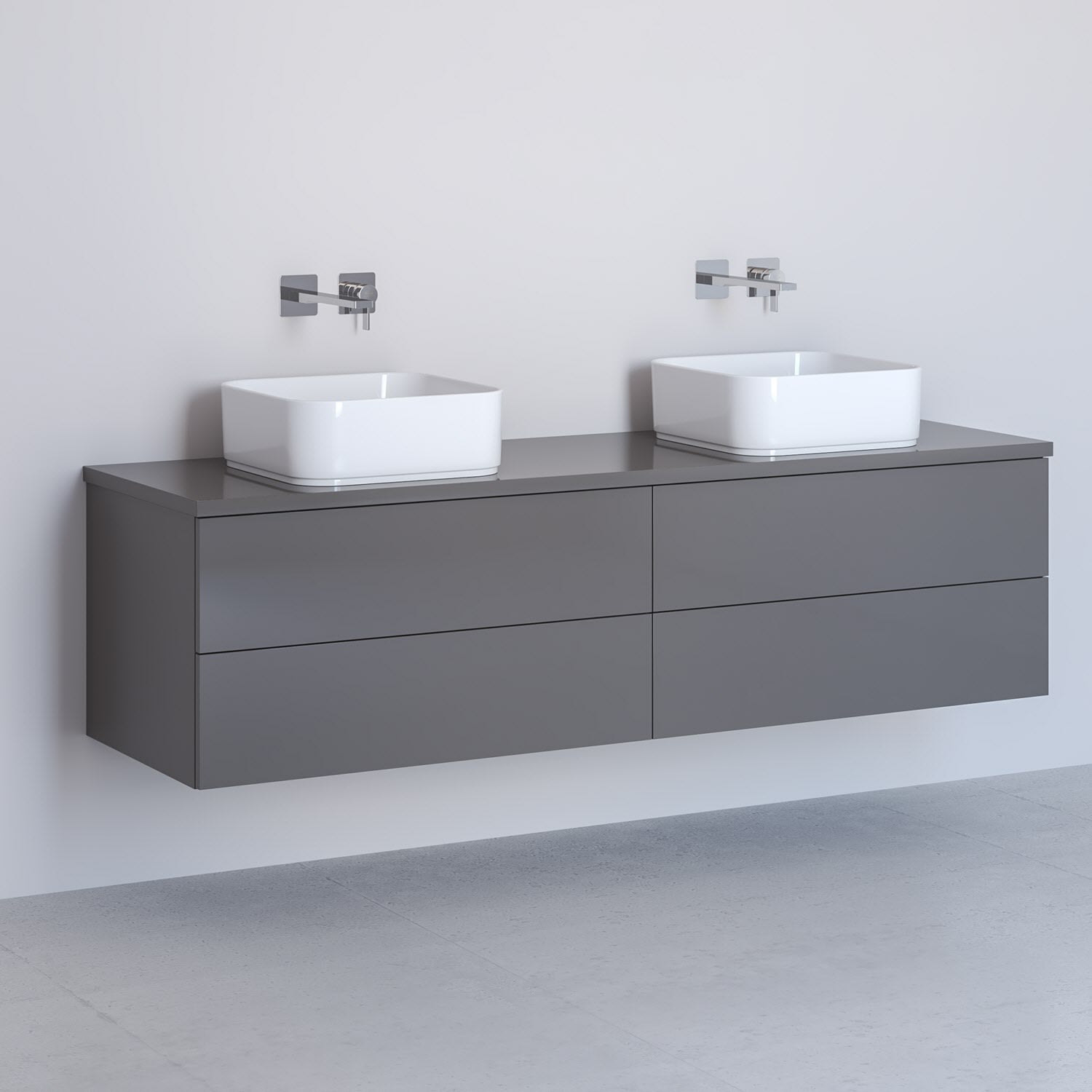 Kronenbach Cube Waschtischkonsole 161 cm mit 2 Aufsatzwaschtischen, 4 Auszüge