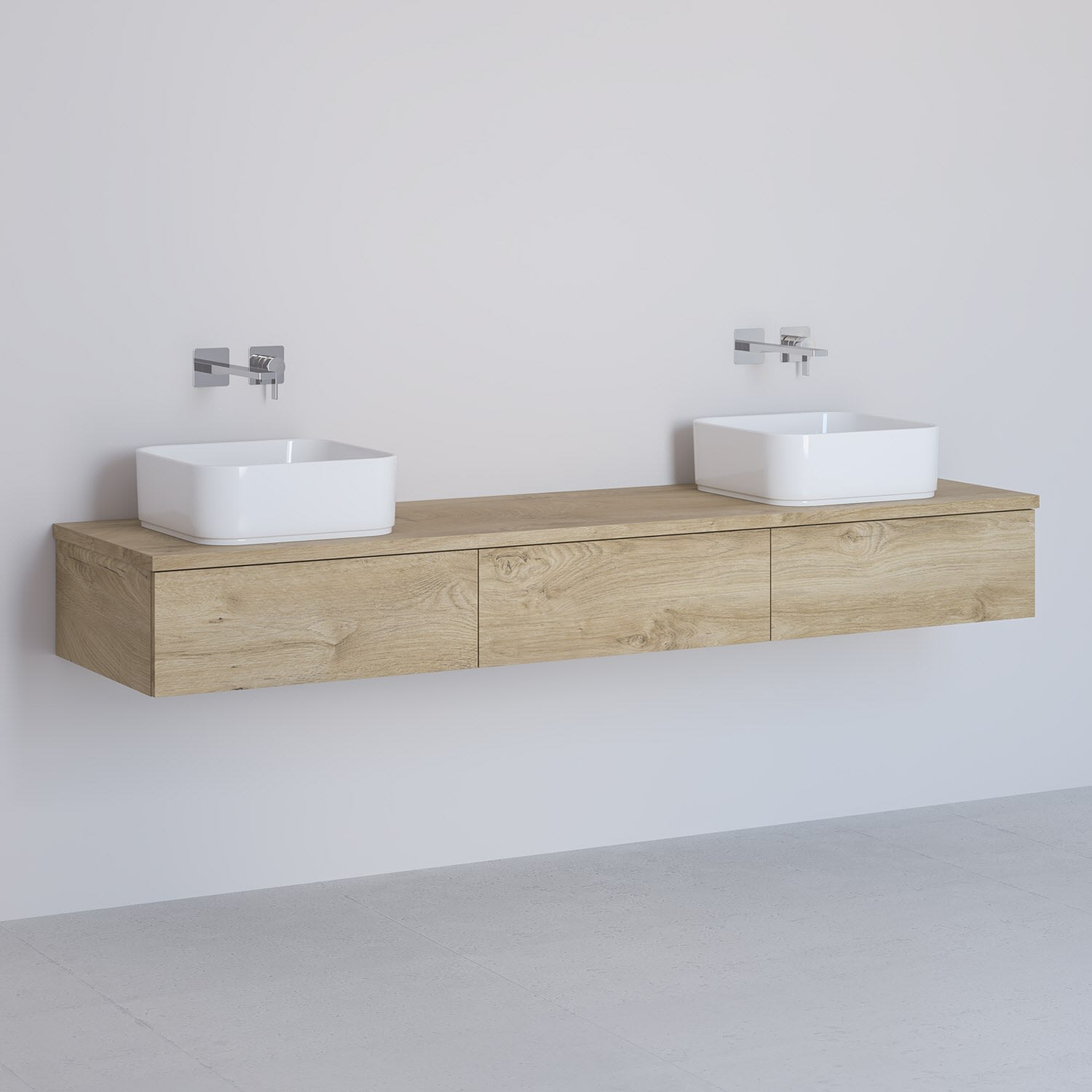 Kronenbach Cube Waschtischkonsole 181 cm mit 2 Aufsatzwaschtischen, 3 Auszüge