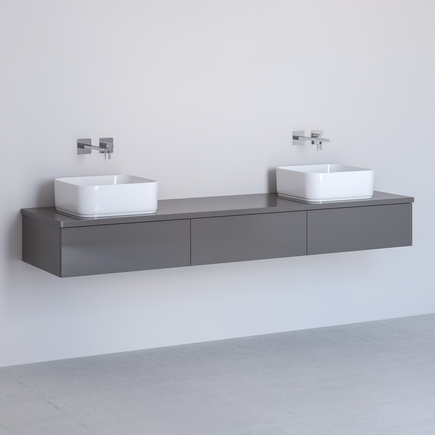 Kronenbach Cube Waschtischkonsole 181 cm mit 2 Aufsatzwaschtischen, 3 Auszüge