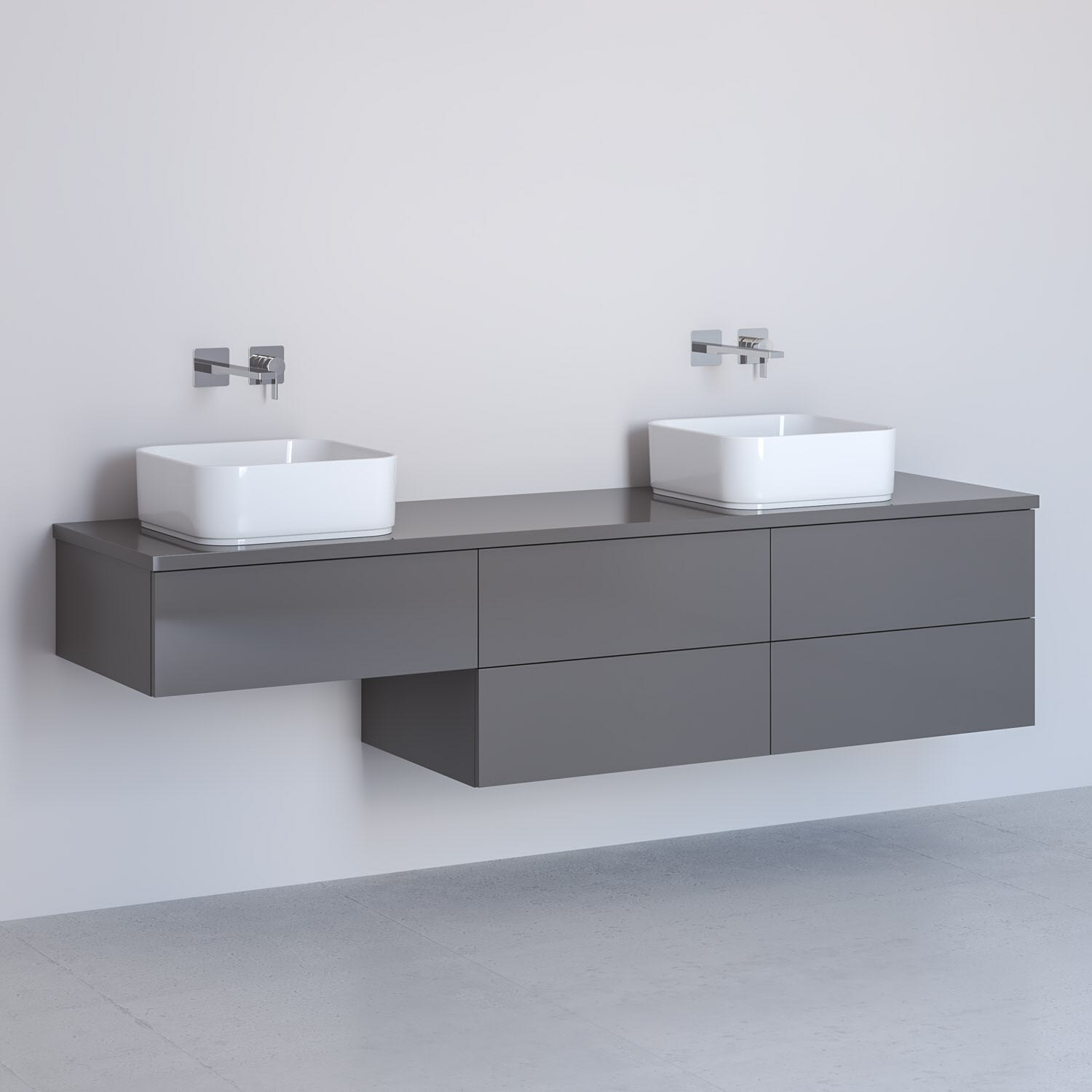 Kronenbach Cube Waschtischkonsole 181 cm mit 2 Aufsatzwaschtischen, 5 Auszüge