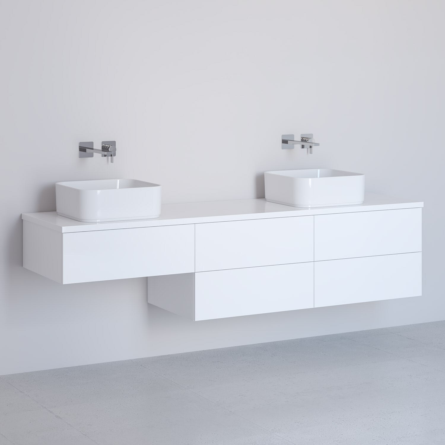Kronenbach Cube Waschtischkonsole 181 cm mit 2 Aufsatzwaschtischen, 5 Auszüge