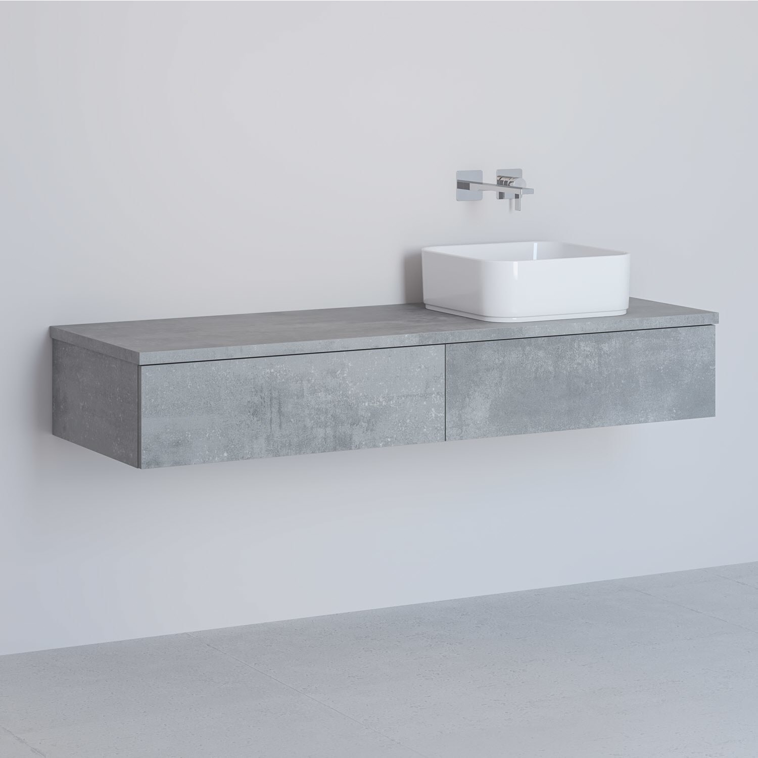 Kronenbach Cube Waschtischkonsole 141 cm mit Aufsatzwaschtisch, 2 Auszüge