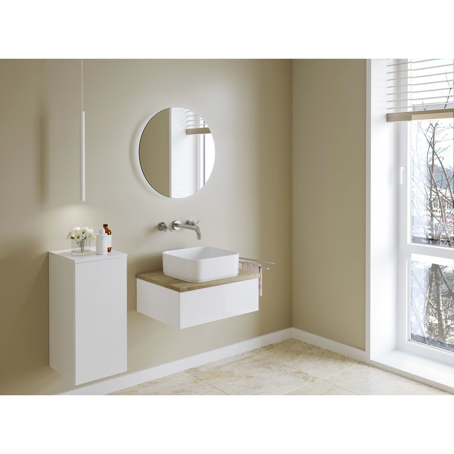 Kronenbach Cube Waschtischkonsole 61 cm mit Aufsatzwaschtisch, 1 Auszug