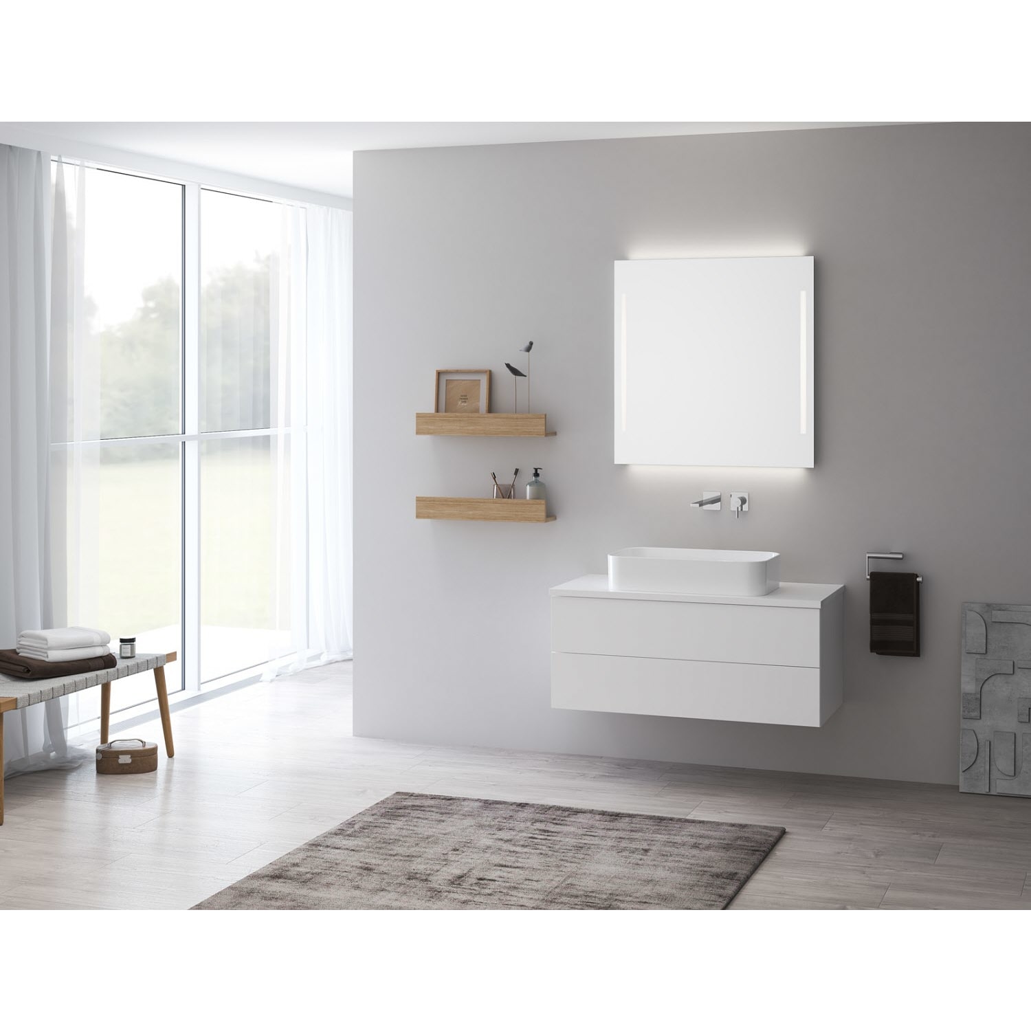 Waschtisch und Armatur sind nicht im Lieferumfang enthalten.