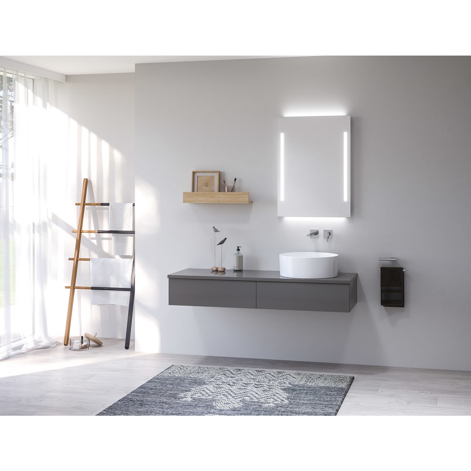 Waschtisch und Armatur sind nicht im Lieferumfang enthalten.
