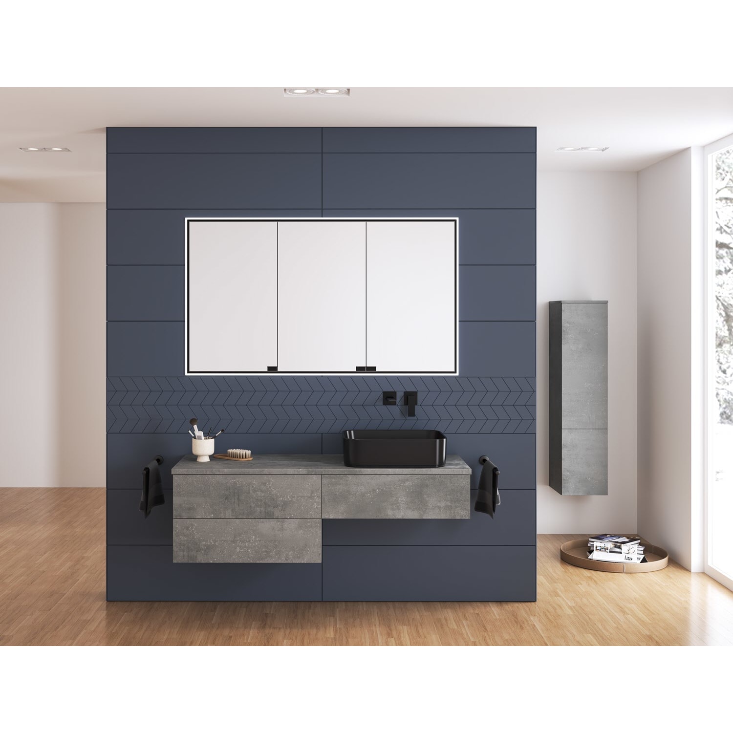 Kronenbach Cube Waschtischkonsole 141 cm mit 3 Auszügen und TIP-ON