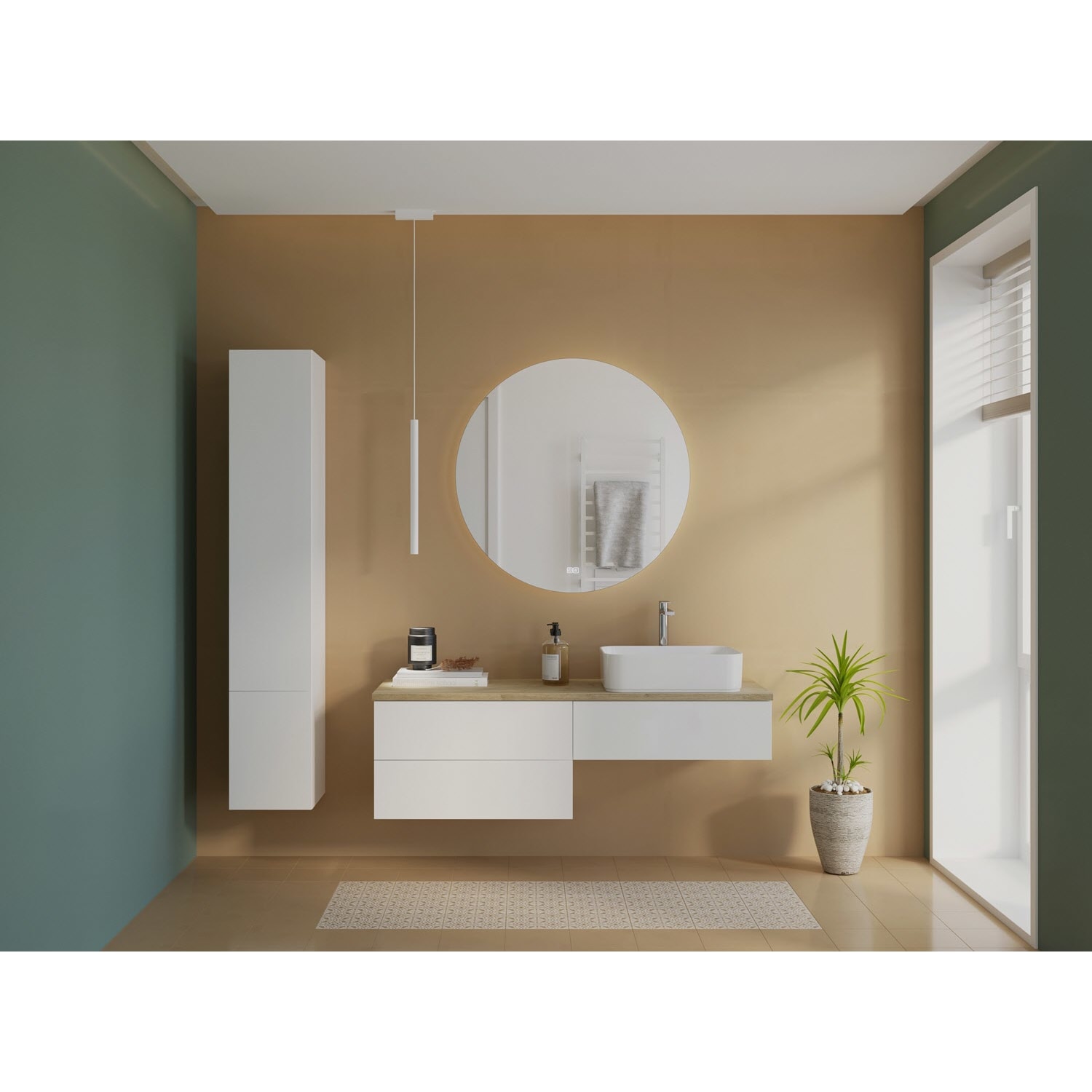 Der Waschtischunterschrank mit Siphonausschnitt kann links oder rechts montiert werden.