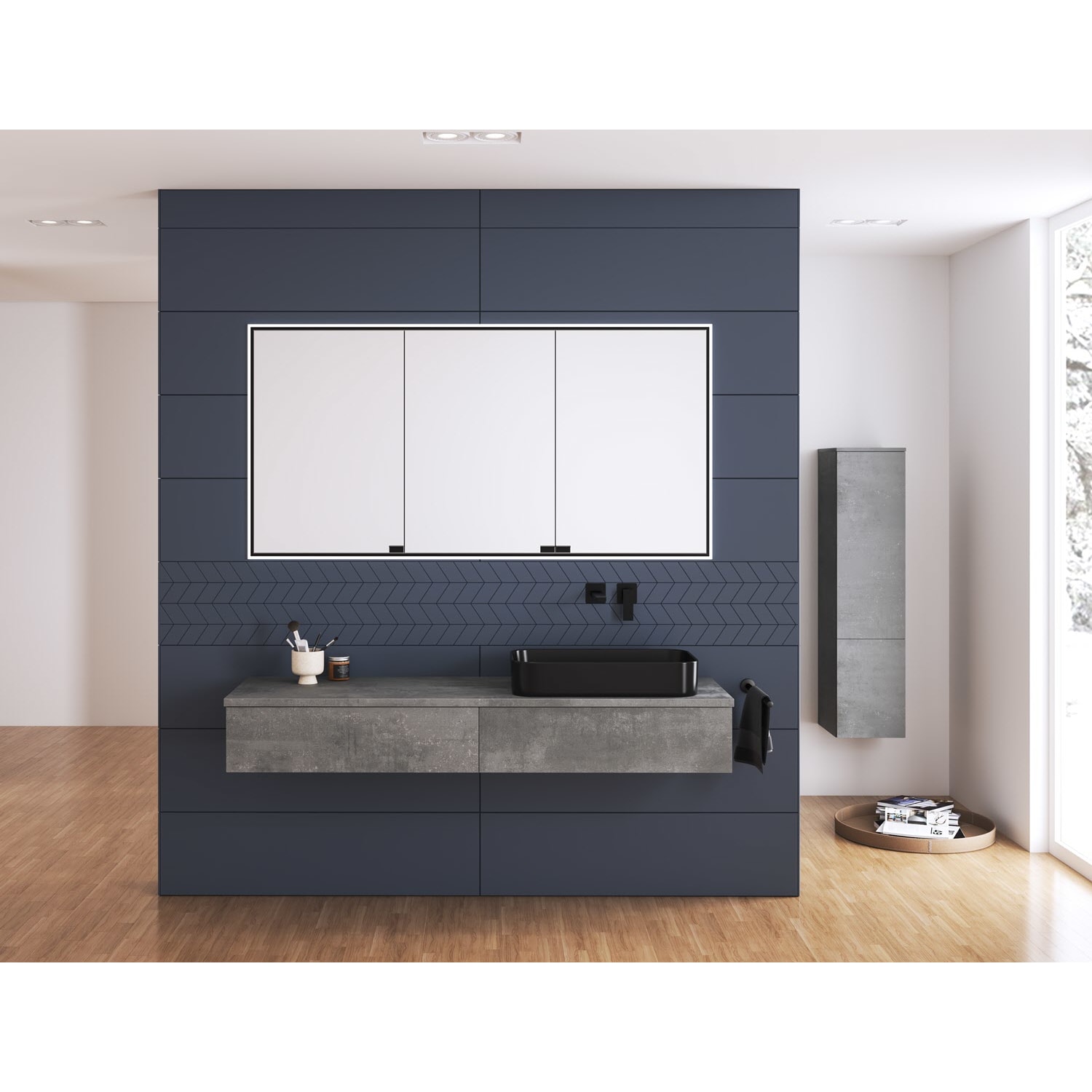 Kronenbach Cube Waschtischkonsole 161 cm mit 2 Auszügen und TIP-ON