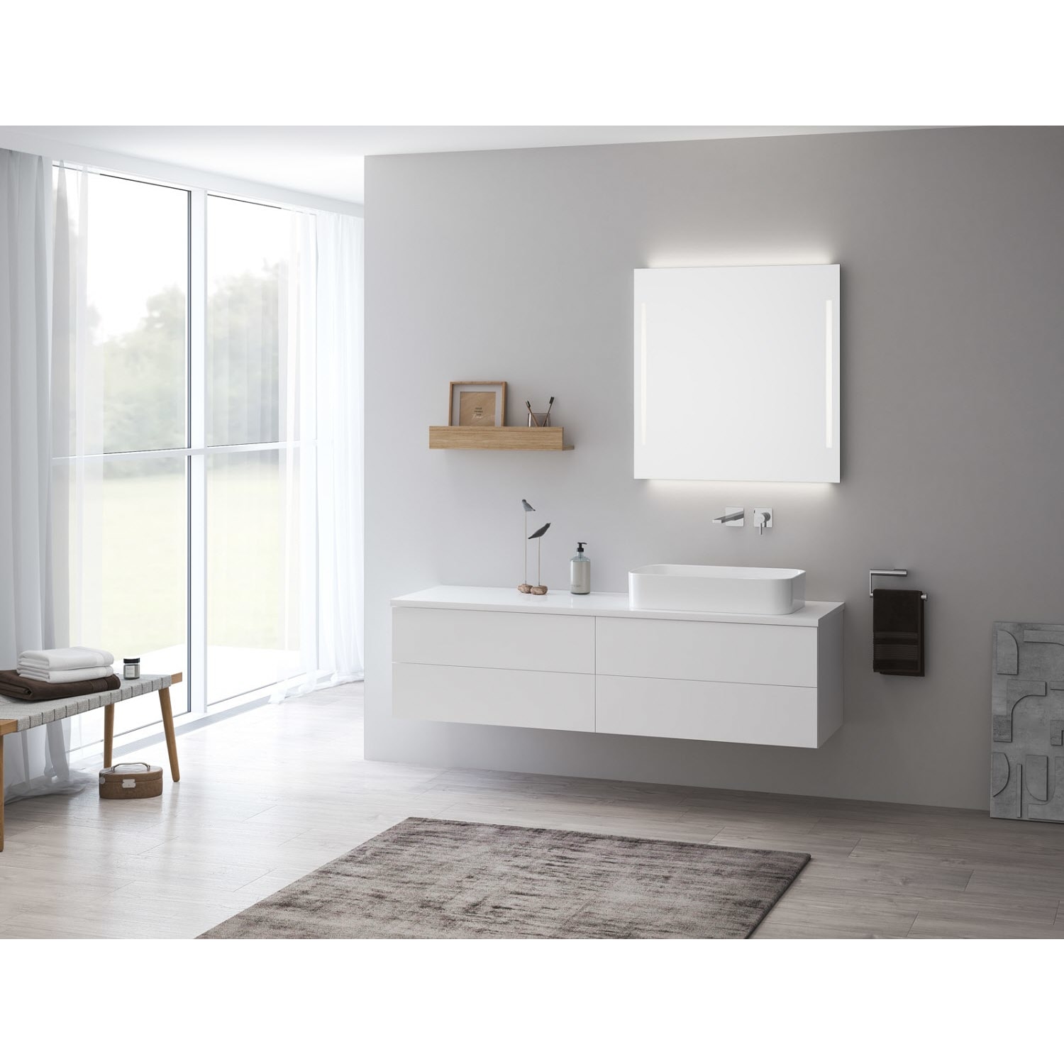 Waschtisch und Armatur sind nicht im Lieferumfang enthalten.