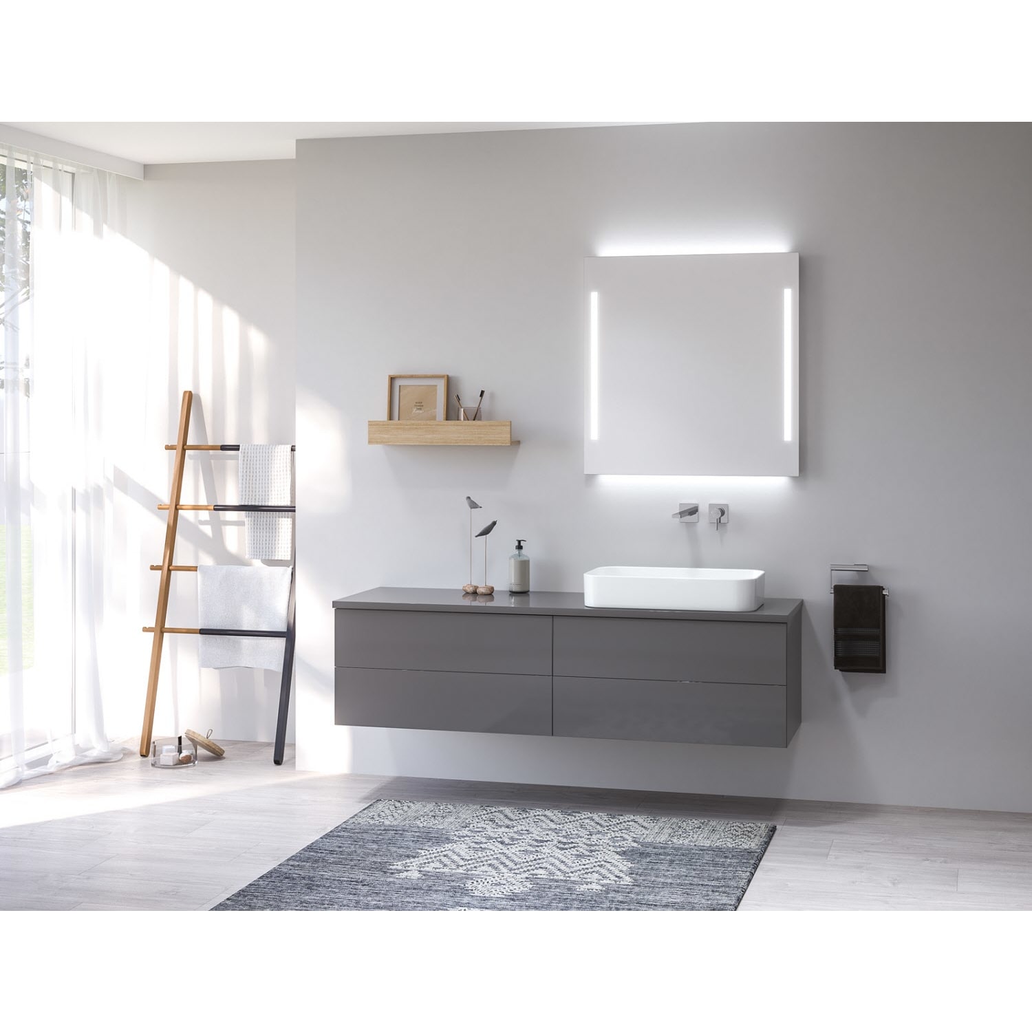 Waschtisch und Armatur sind nicht im Lieferumfang enthalten.