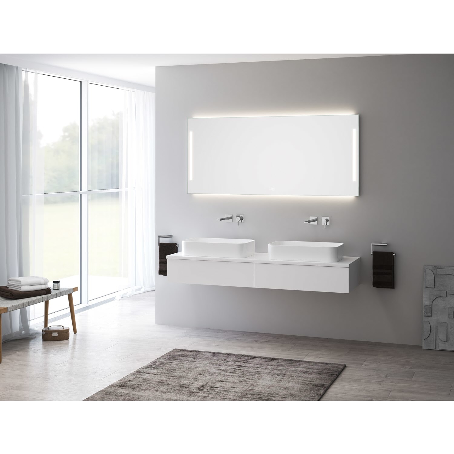 Kronenbach Cube Waschtischkonsole 161 cm für 2 Waschtische mit 2 Auszügen und TIP-ON