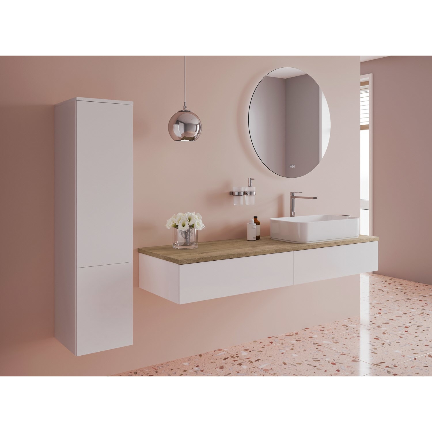 Waschtisch und Armatur sind nicht im Lieferumfang enthalten.