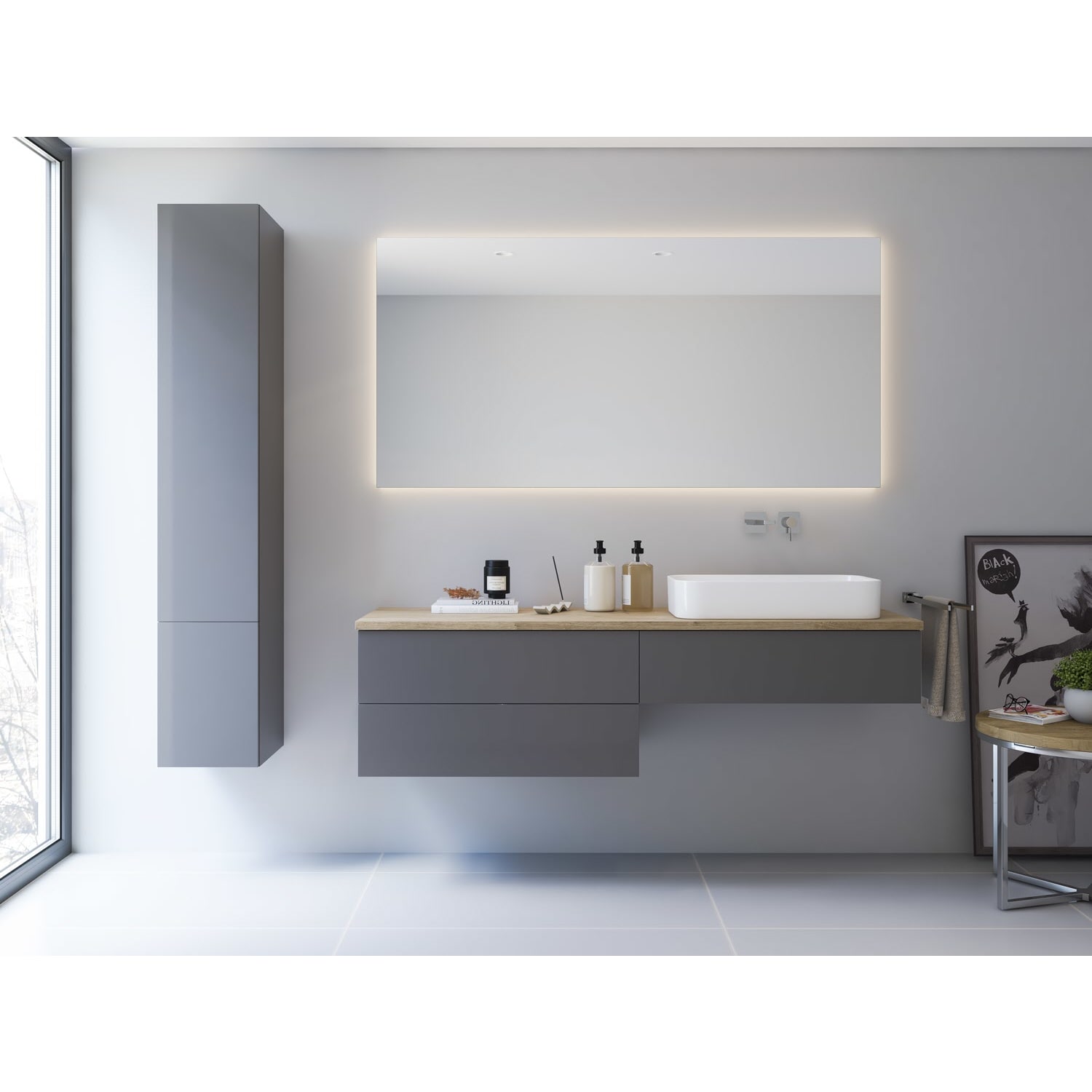 Waschtisch und Armatur sind nicht im Lieferumfang enthalten.