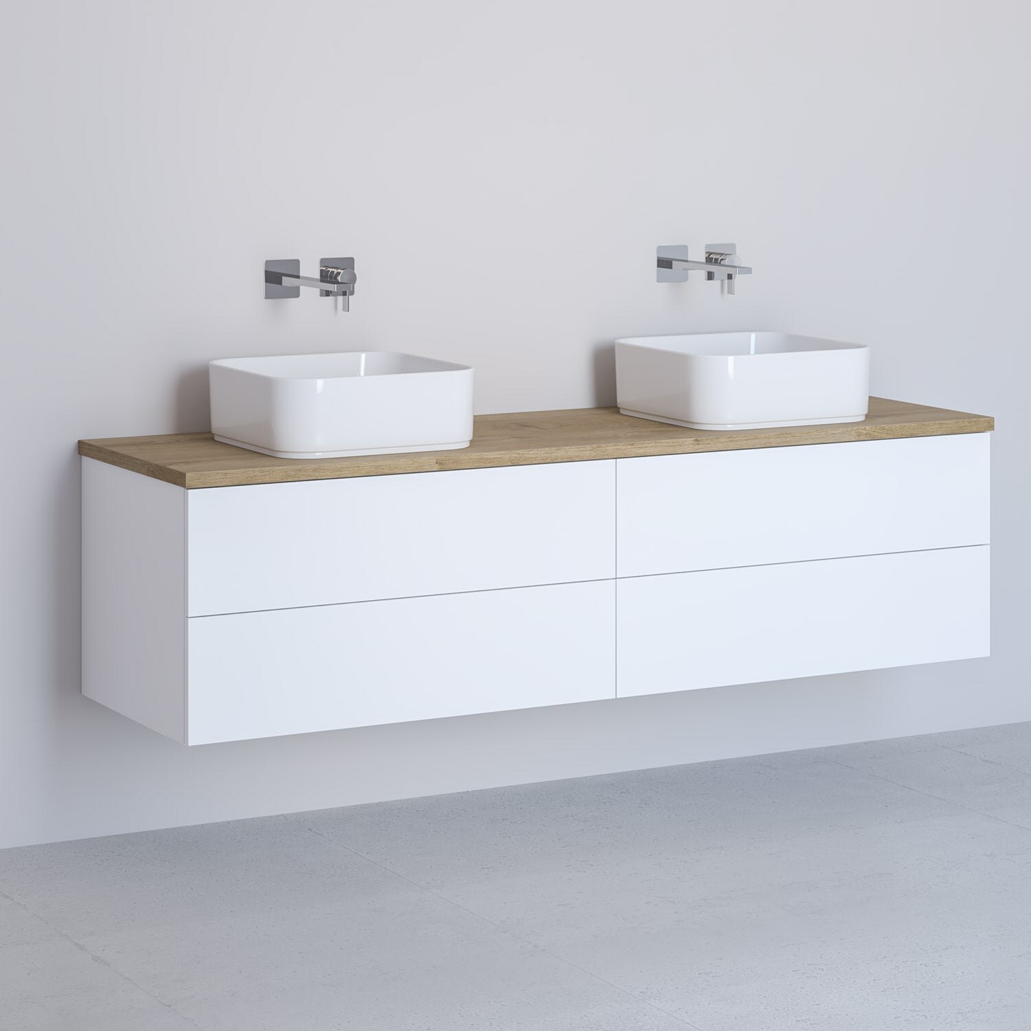 Kronenbach Cube Waschtischkonsole 161 cm für 2 Waschtische mit 4 Auszügen und TIP-ON