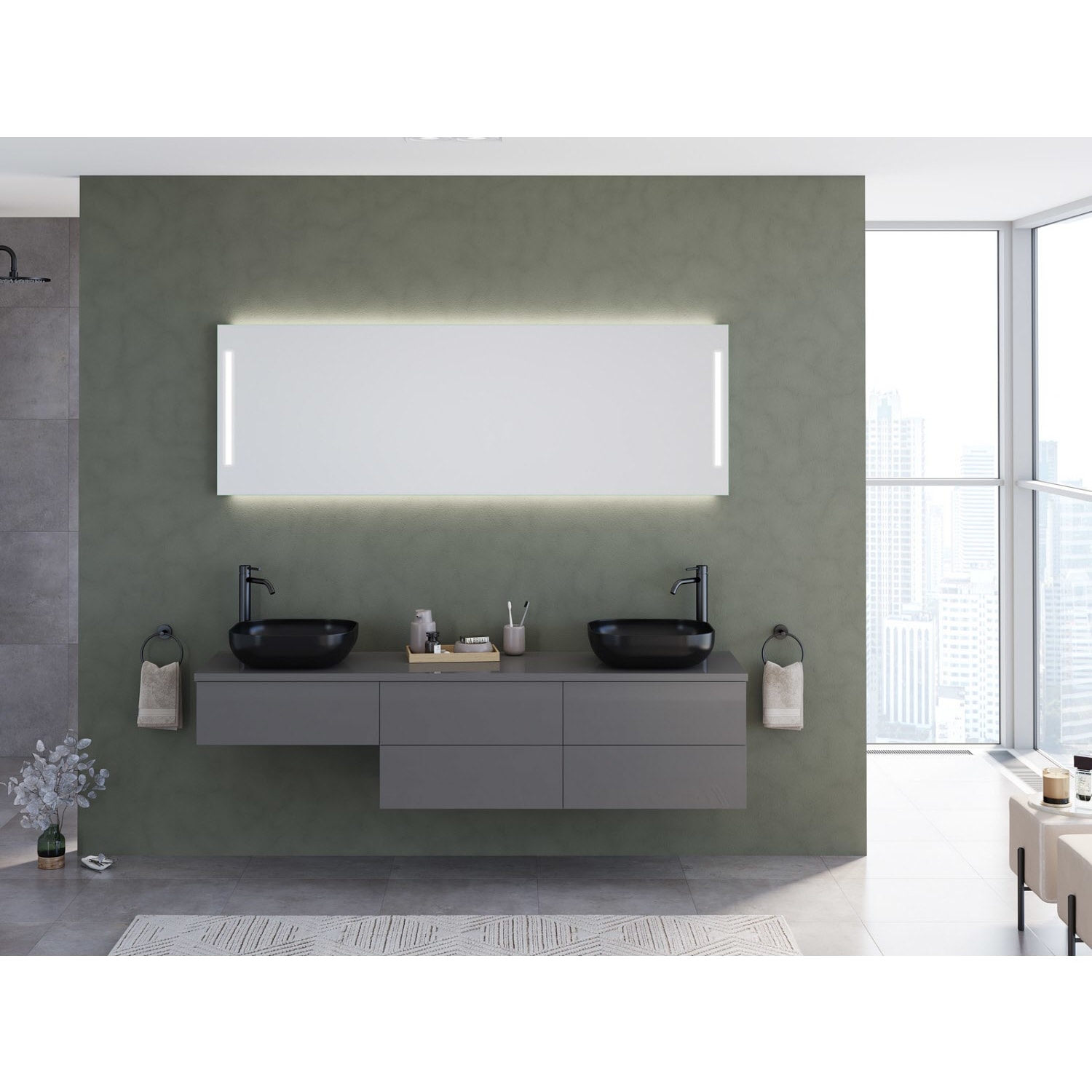 Kronenbach Cube Waschtischkonsole 181 cm für 2 Waschtische mit 5 Auszügen und TIP-ON