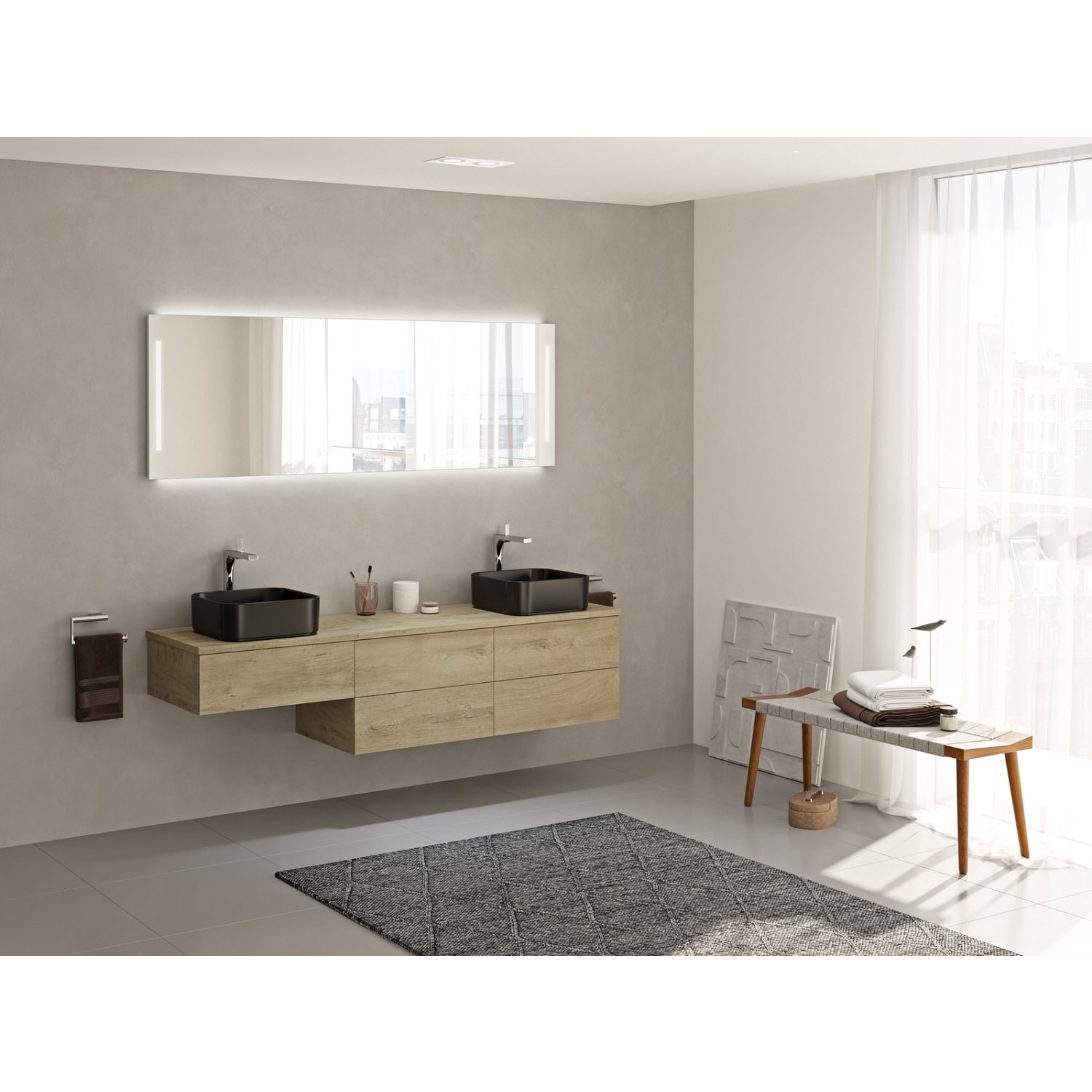 Kronenbach Cube Waschtischkonsole 181 cm für 2 Waschtische mit 5 Auszügen und TIP-ON
