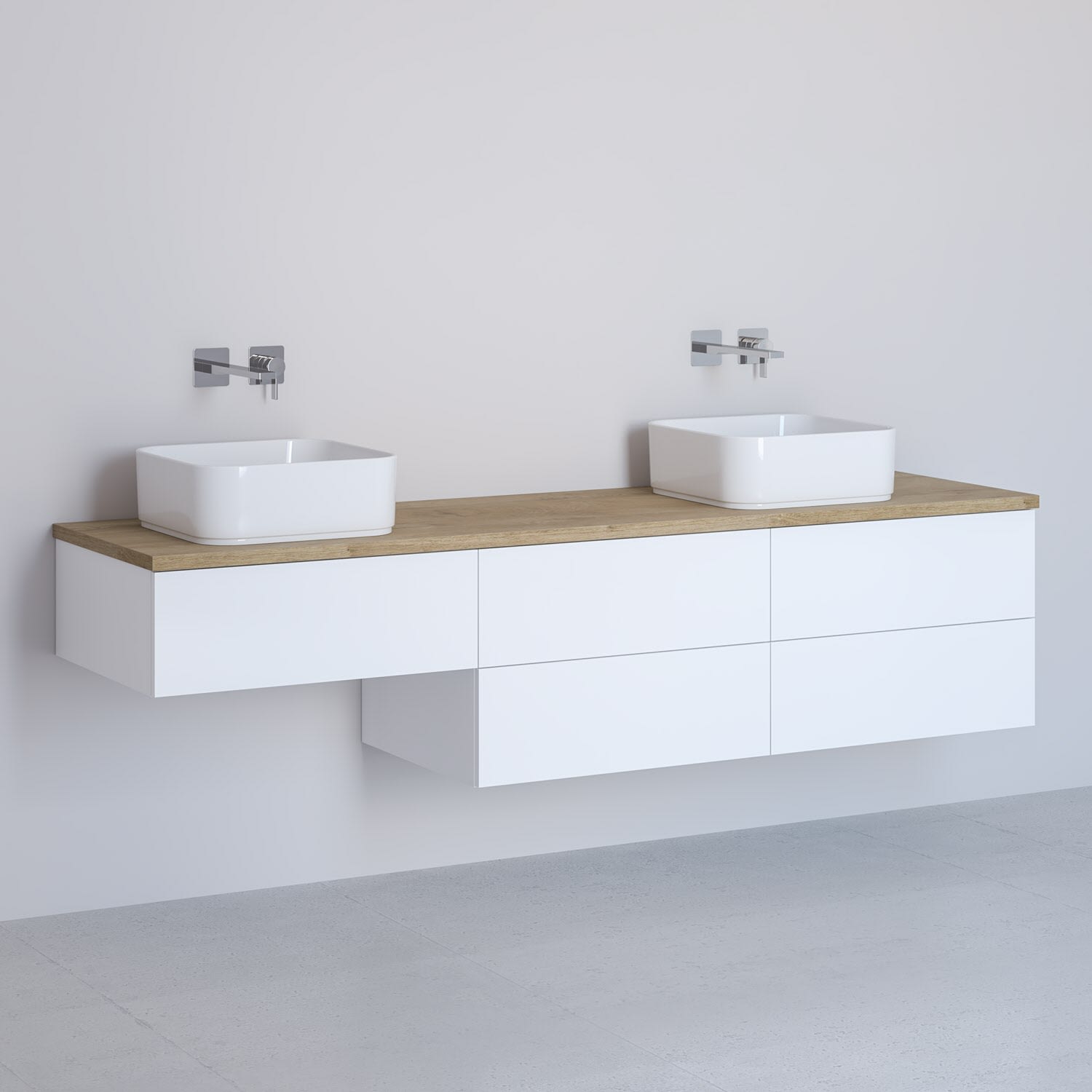 Kronenbach Cube Waschtischkonsole 181 cm für 2 Waschtische mit 5 Auszügen und TIP-ON