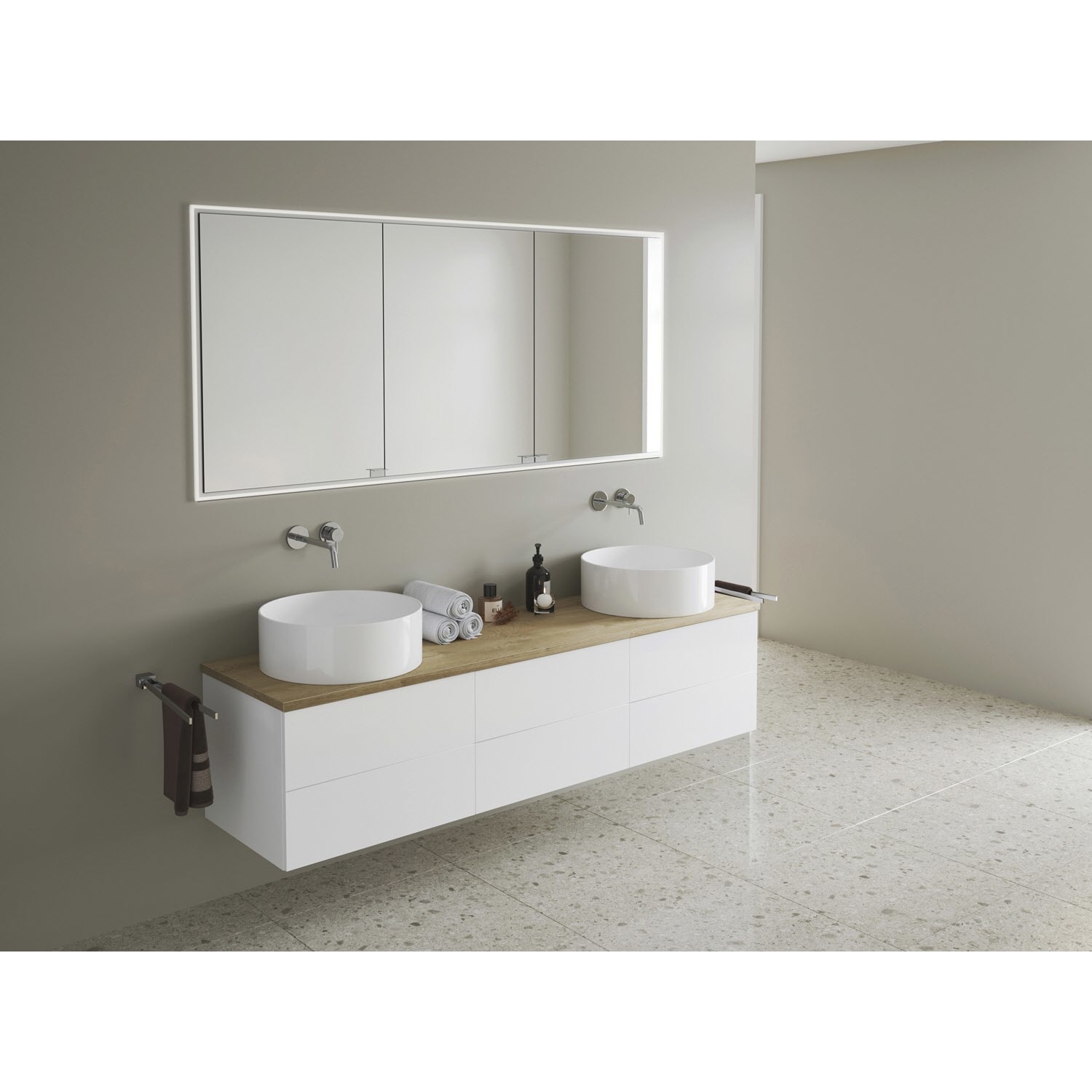 Kronenbach Cube Waschtischkonsole 181 cm für 2 Waschtische mit 6 Auszügen und TIP-ON