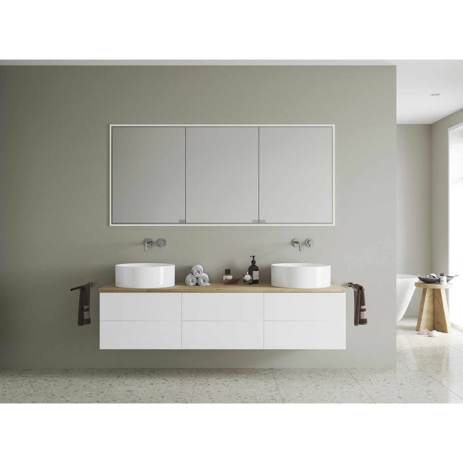 Kronenbach Cube 2.0 Spiegelschrank 180 cm, Aufputz, 3-türig