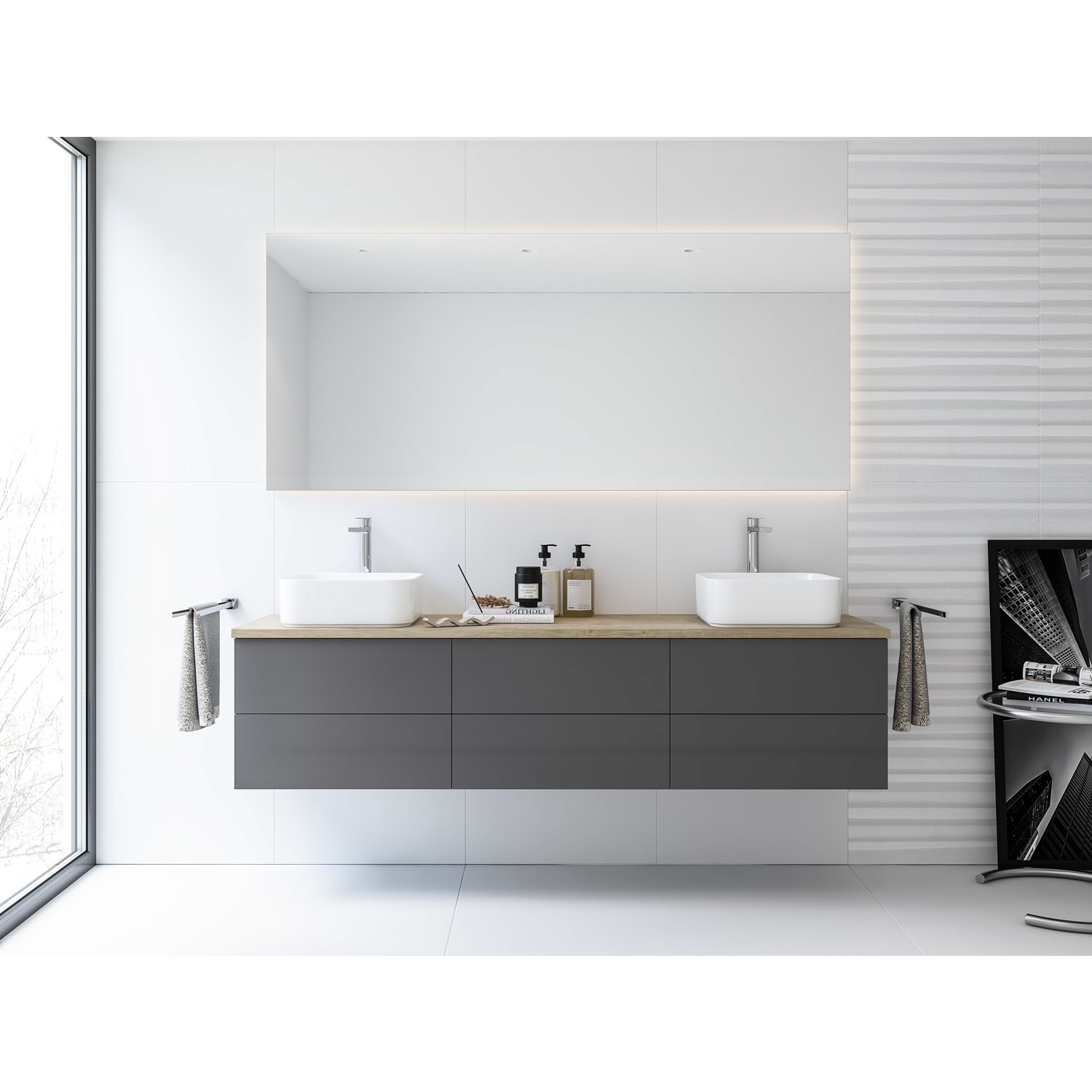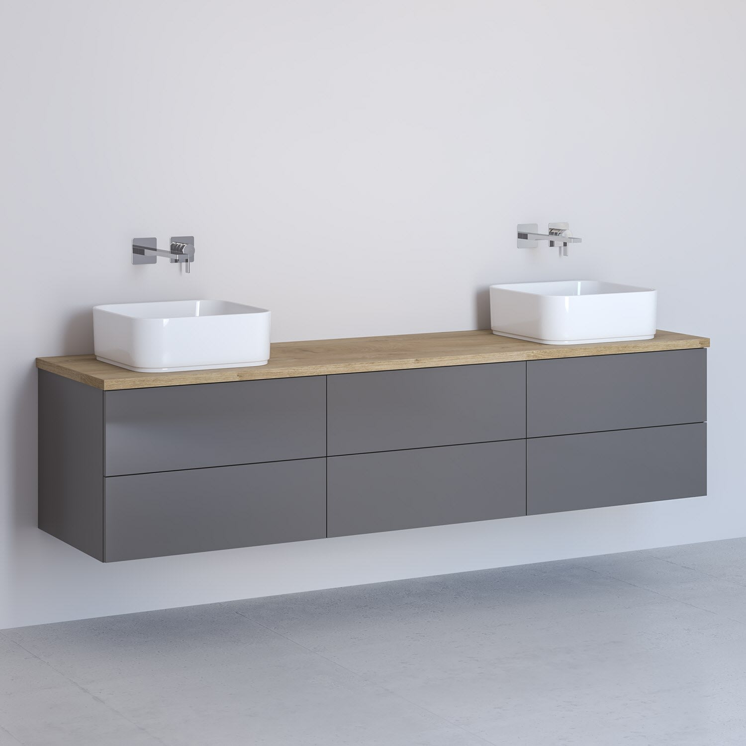 Kronenbach Cube Waschtischkonsole 181 cm für 2 Waschtische mit 6 Auszügen und TIP-ON