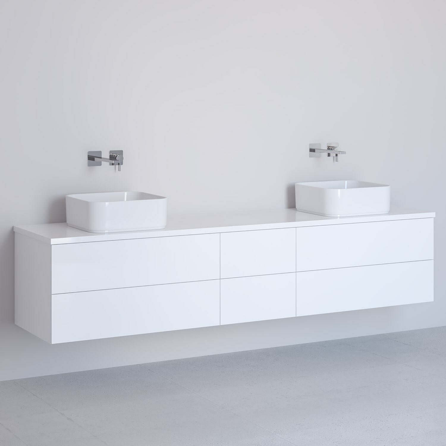 Kronenbach Cube Waschtischkonsole 201 cm für 2 Waschtische mit 6 Auszügen und TIP-ON