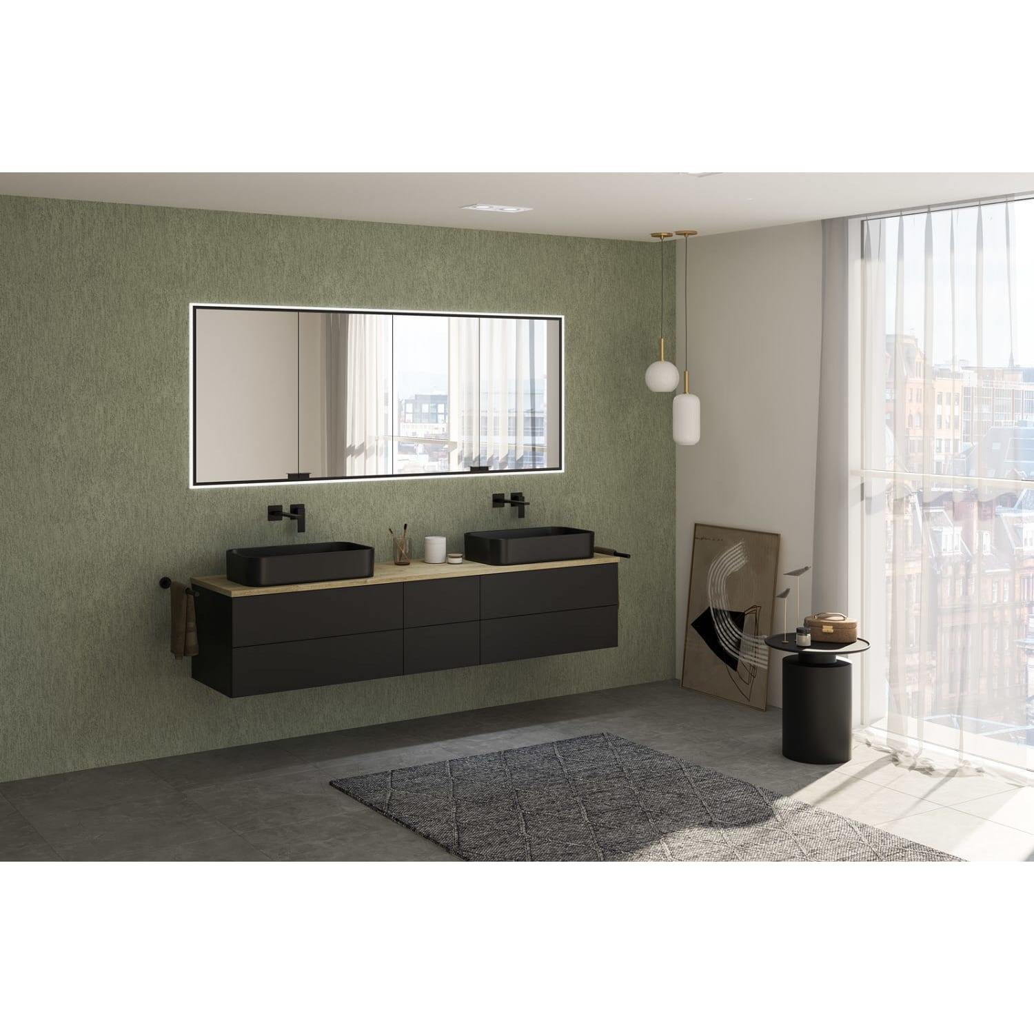 Kronenbach Cube Waschtischkonsole 201 cm für 2 Waschtische mit 6 Auszügen und TIP-ON