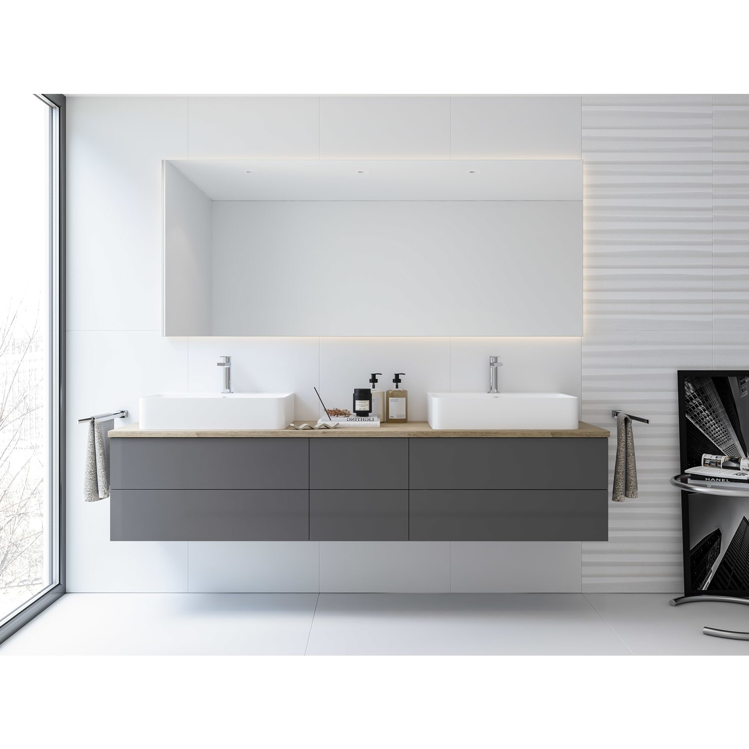 Kronenbach Cube Waschtischkonsole 201 cm für 2 Waschtische mit 6 Auszügen und TIP-ON
