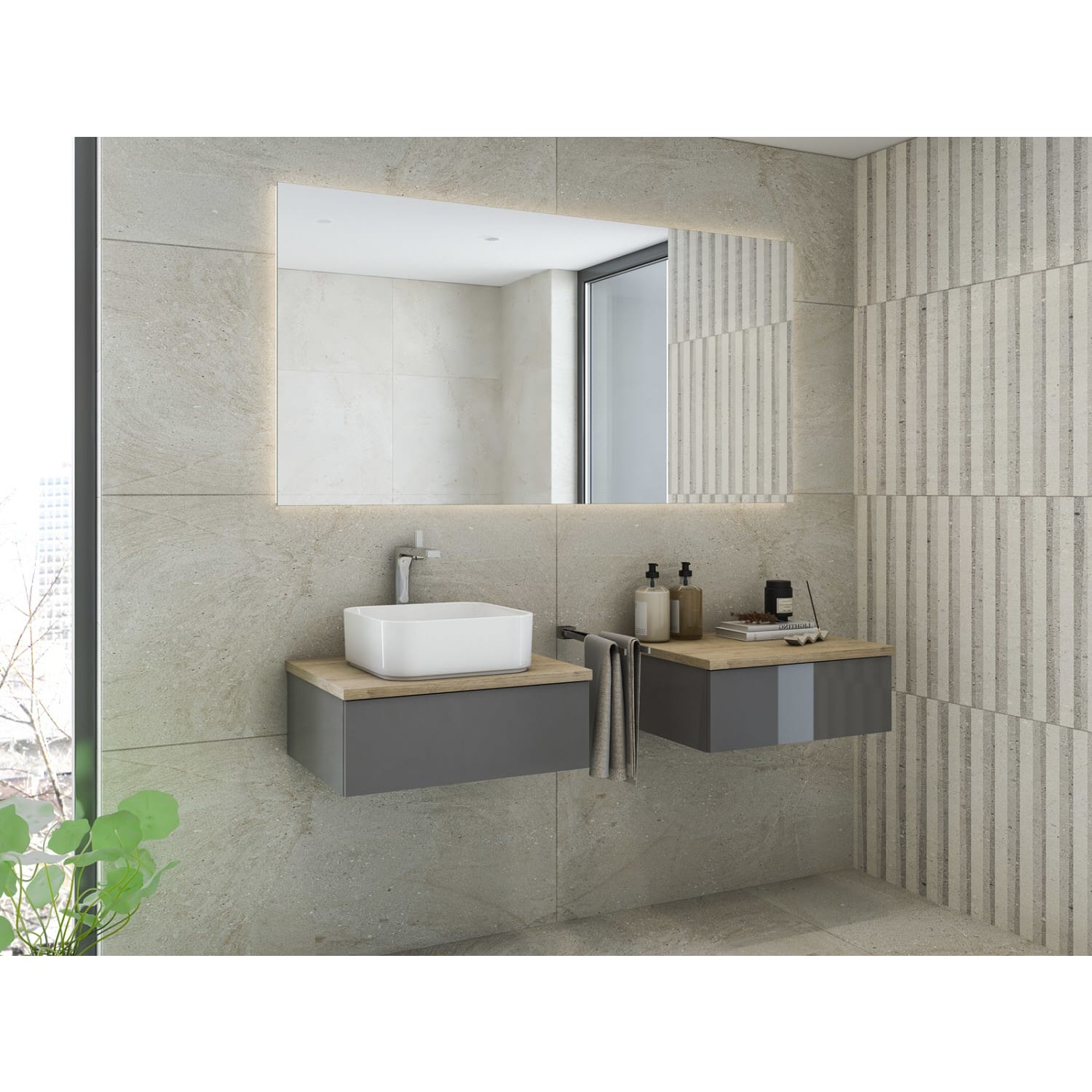 Der Korpuskern besteht aus einer Holzwerkstoffplatte. Die spezielle Melaminharzbeschichtung auf der Oberfläche bietet Schutz gegen Feuchtigkeit, Hitze und haushaltsübliche Beanspruchungen. Für eine dauerhafte Stabilität ist der Korpus mehrfach gedübelt. Die Waschtischplatte hat einen mehrschichtigen Aufbau. Dieser Schichtstoff ist härter, extrem widerstandsfähig, hygienisch, pflegeleicht, feuchtigkeitsunempfindlich und hält über Jahre selbst großen Alltagsbelastungen stand.