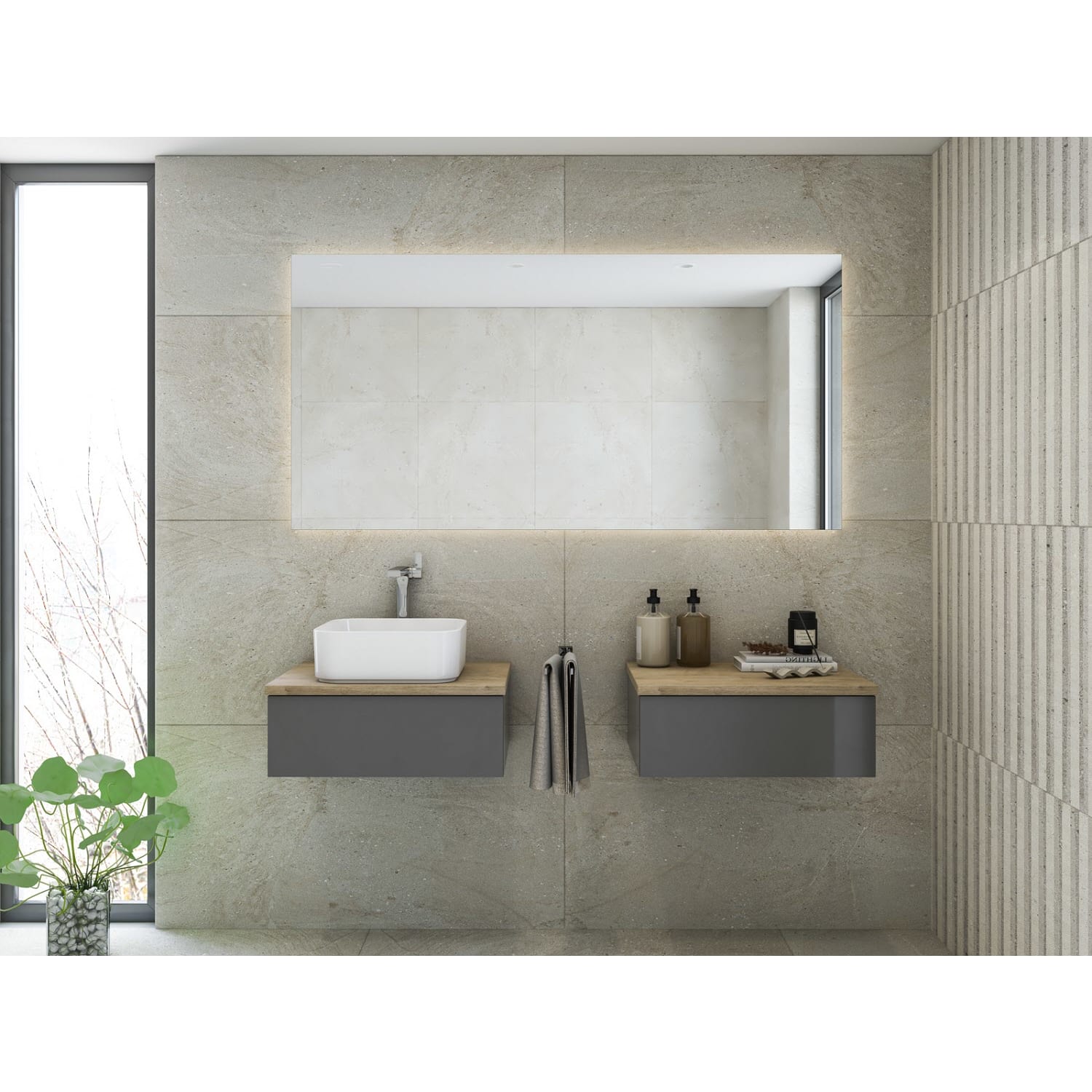 - 1 x Waschtischplatte (B: 61 T: 48,7 H: 2,5 cm), ohne Hahnlochbohrung und ohne Ausschnitt