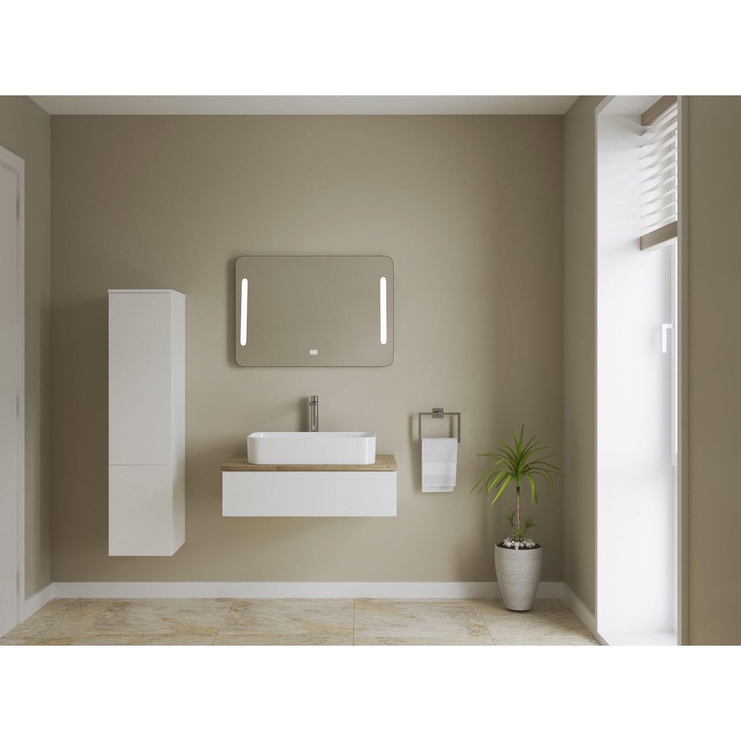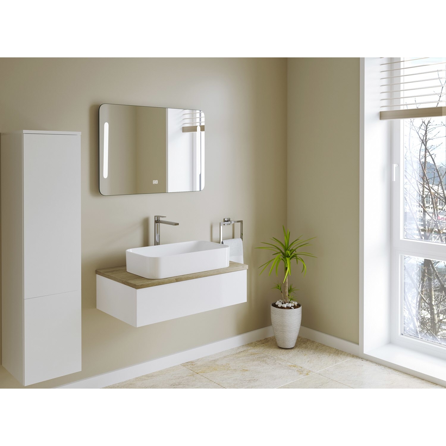 Waschtisch und Armatur sind nicht im Lieferumfang enthalten.