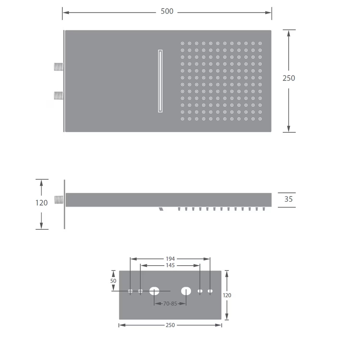 Kronenbach Duschset 3 mit Kopfbrause 50 x 25 cm und Stabhandbrause eckig