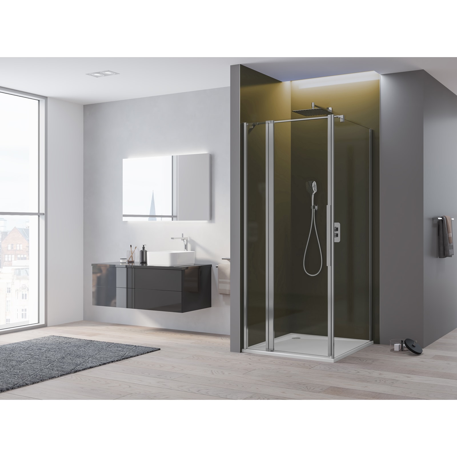 - Für eine vollständige Duschabtrennung werden zwei Halbteile benötigt!