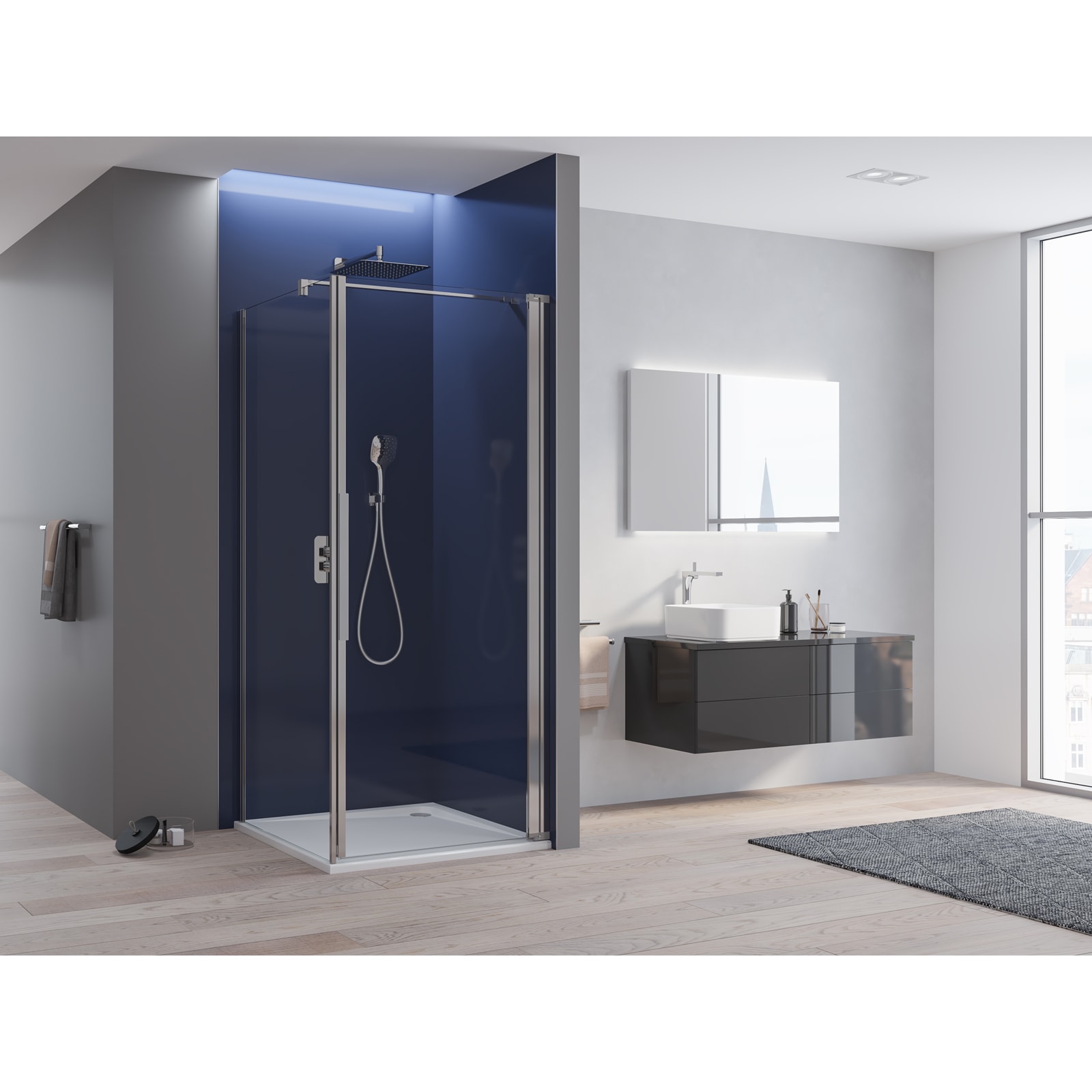 - Für eine vollständige Duschabtrennung werden zwei Halbteile benötigt!