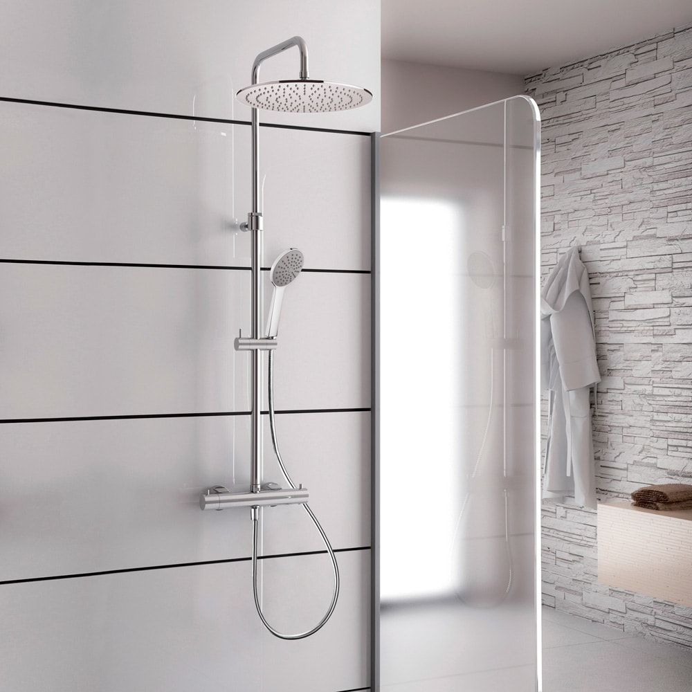 Kronenbach Duschsystem Aufputz mit Thermostat und Kopfbrause Ø 30 cm, rund